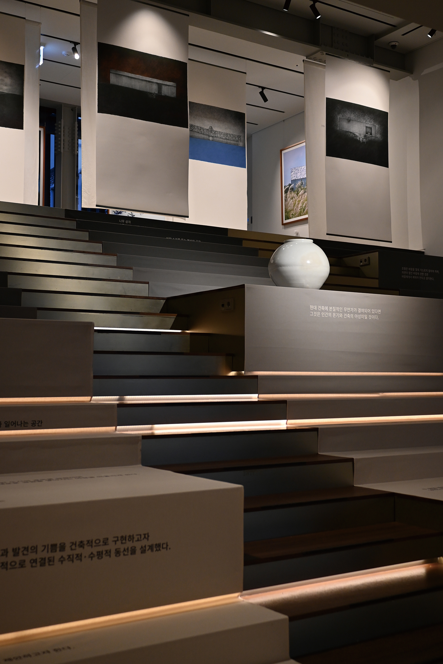 The second theme, ¡®2000: Architect ITAMI JUN and YOO EHWA¡¯ examines the 2000s, when the two architects – father and daughter, mentor and junior – worked in close dialogue. Featured projects include Itami Jun¡¯s major works in Jeju, such as the Three Art Museums: Water, Wind and Stone (2006, covered in SPACE No. 458) and Church of Sky (2009), as well as projects across Korea, including Oboe Hills in Pyeongchangdong (2010) and the Gyeongju Expo contest entry (2004). Spanning both the first and second floors, this section leads visitors up a staircase inscribed with quotations from the two architects. The ascent suggests that while Yoo Ihwa¡¯s architecture is deeply connected to Itami Jun¡¯s philosophy, it is simultaneously moving ahead along a path that is distinctly her own.