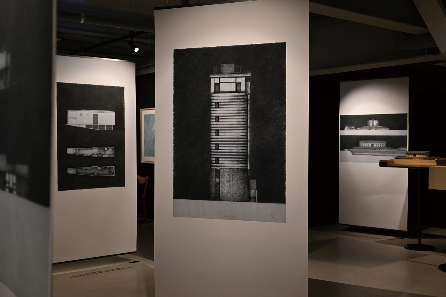 The first theme, ¡®2020: Architect YOO EHWA¡¯ is presented on one side of the gallery¡¯s first floor. Through architectural models, drawings, sketches, and video works, the exhibition introduces Yoo Ihwa¡¯s major projects, including the ITAMI JUN Museum (2022, covered in SPACE No. 665), FEZH, Sihojae (2023, covered in SPACE No. 674), and Voice of Heaven (2023, covered in SPACE No. 674), illuminating her distinctive architectural language. Fabric panels fluttering across the gallery visually evoke the notion of an ¡®architecture of wind.¡¯ One particularly striking feature is a caption from architectural critic Chang Yongsoon (Professor, Hongik University): ¡®Where Itami Jun was informed by the resonance or vibrations produced by the monolithic space that he finally reached, Yoo Ehwa transforms any such vibrations into a flow¡¯ (covered in SPACE No. 674, FRAME section). Similarly, the first theme focuses on how Itami Jun¡¯s legacy has evolved in Yoo Ihwa¡¯s hands.