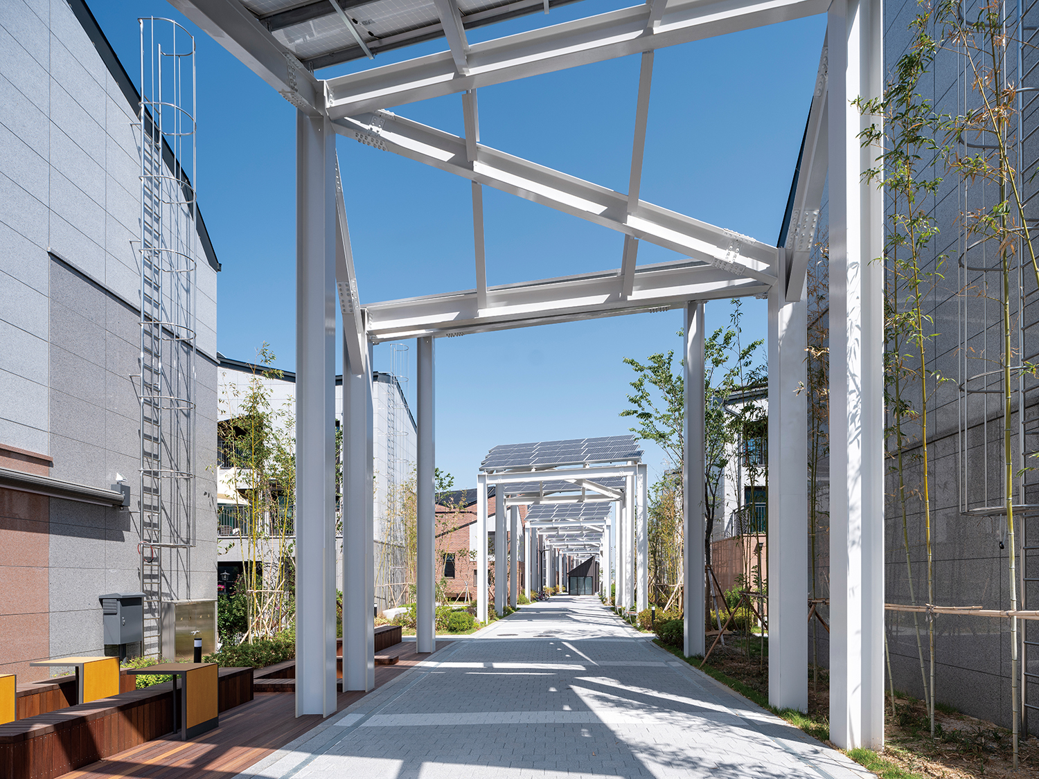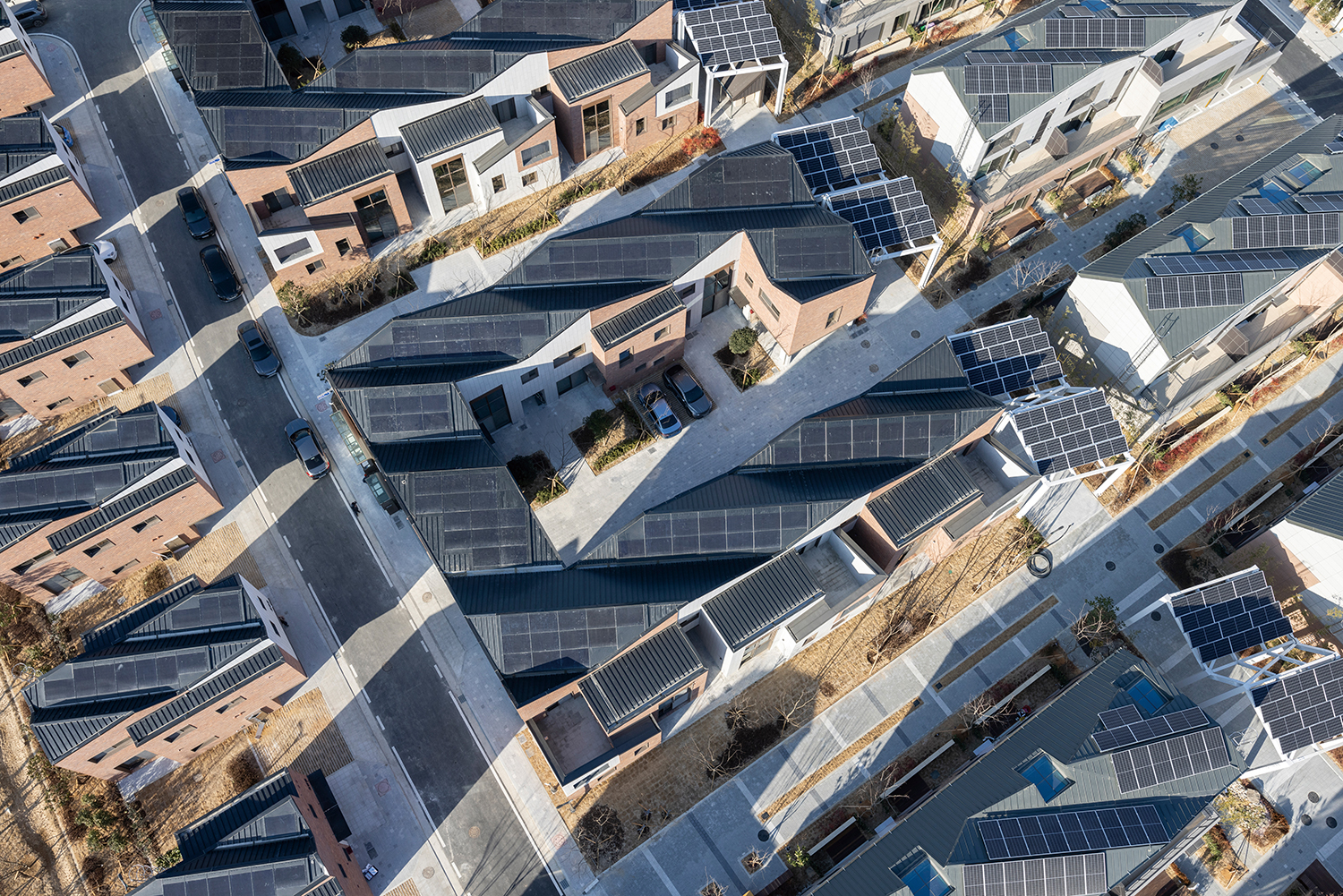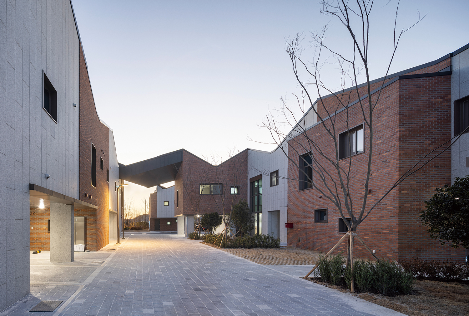 The complex is organised around a single pedestrian axis, the ¡®Smart Community Corridor¡¯. More than a simple circulation system, it constitutes a social cross-section where residents¡¯ lives intersect, while pavements for walking and the gaze of passersby occupy the centre. Housing is arranged along the perimeter in detached types and in party-wall-connected types, forming block configurations that share open courtyards. In the detached houses, south-facing daylighting, private yards, and flexible furniture propose ways of ¡®living broadly within small spaces¡¯. In the party-wall housing, which explores the boundaries and rhythms of shared living, the party wall functions both as a device for energy efficiency and as a loose connection between dwellings.