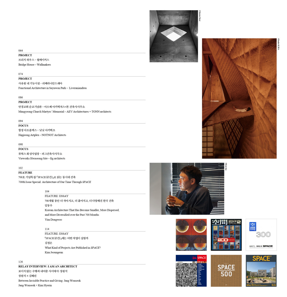 Youth does not always signify the new, nor does novelty automatically amount to progress. Even so, the line quoted from the short story above invites a nod of agreement. Few would dispute the notion that to understand Korean architecture of our time we must also look at the world as younger architects see it. This March issue marks the 700th issue of SPACE, which celebrates its 60th anniversary this year. Across these 700 issues lie clues to understanding the contemporary—scattered like beads yet to be strung together. From these countless fragments, which should we select to assemble a representative collage of the contemporary? The 700th issue special feature, ¡®Architecture of Our Time Through SPACE¡¯ (though not conceived with this intention in mind at the article¡¯s conception) ultimately grants a substantial share of its space to younger architects.