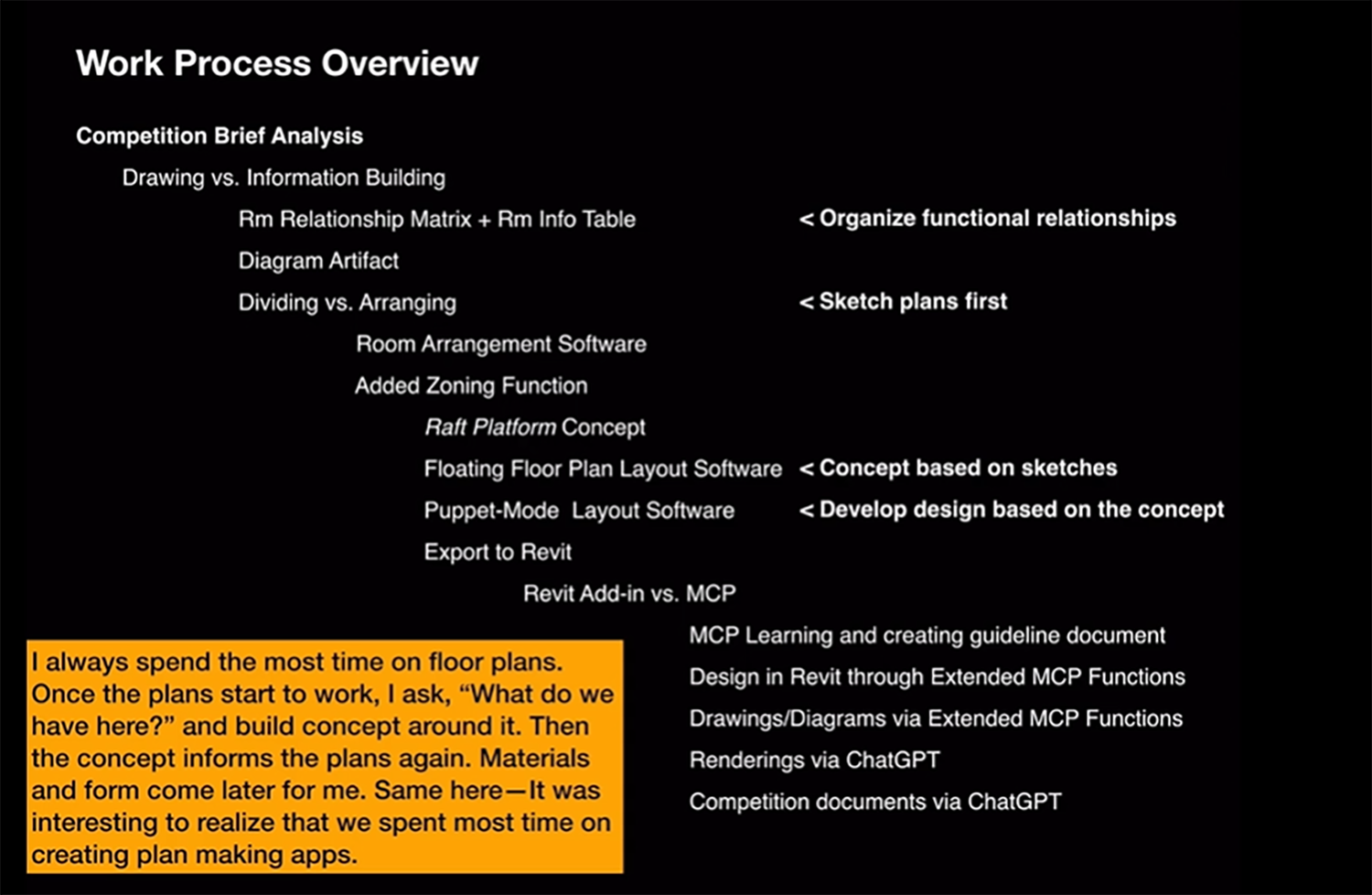À̾îÁö´Â ÁúÀÇÀÀ´ä¿¡¼´Â AIÀÇ ¿ªÇÒ È®´ë¿¡ ´ëÇÑ ¿ì·Á°¡ ÁÖ·Î Á¦±âµÆ´Ù. ±×·¯³ª ÀÌ ½ÇÇèÀº AI°¡ °ÇÃà°¡ÀÇ ¿ªÇÒÀ» ´ëüÇѴٱ⺸´Ù´Â, ½Ç¹«¿¡¼ °ÇÃà°¡°¡ ¼³°è µµ±¸¸¦ Á¤ÀÇÇϰí ÁöÈÖÇÏ´Â ¹æ½ÄÀÌ ¾î¶»°Ô º¯ÇÏ´ÂÁö¸¦ º¸¿©ÁØ »ç·Ê¶ó ÇÒ ¼ö ÀÖ´Ù. °ÇÃà°¡´Â ¿©ÀüÈ÷ °¢ ´Ü°è¸¶´Ù ¹æÇâÀ» ¼³Á¤ÇÏ°í ¼³°è Àǵµ¸¦ ¾ð¾î·Î ¸íÈ®È÷ ±ÔÁ¤ÇØ¾ß Çϸç, AI´Â À̸¦ ÀÓ½ÃÀû µµ±¸·Î ±¸ÇöÇÏ´Â Á¶·ÂÀÚ¿¡ °¡±õ´Ù. ¾ç¼öÀÎÀº ¡°Æò¸éÀ» ¸¸µå´Â °ÍÀ» µµ¿ÍÁÖ´Â ¼ÒÇÁÆ®¿þ¾î¸¦ ¸¸µå´Â µ¥ °¡Àå ¸¹Àº ½Ã°£À» ÇÒ¾ÖÇÑ °ÍÀº ½ÇÁ¦·Î Æò¸éÀ» Áß½ÉÀ¸·Î ÀÛ¾÷ÇÏ´Â ÀÚ½ÅÀÇ ½ºÅ¸ÀÏÀÌ ¹Ý¿µµÈ °Í¡±ÀÌ¶ó ¸»Çߴµ¥ ÀÌ´Â AI°¡ °ÇÃ༳°è¿¡¼ ¡®ÀÚµ¿È¡¯ÀÇ È¯»óÀ» ½ÇÇöÇÏ´Â °ÍÀÌ ¾Æ´Ñ, °ÇÃà°¡°¡ º»·¡ Áö´Ñ ¼±È£¸¦ »õ·Î¿î ¹æ½ÄÀ¸·Î ¸Å°³ÇÒ ¼ö ÀÖ´Ù´Â °ÍÀ» µå·¯³½´Ù. ¾ÕÀ¸·Î AI°¡ ¸¸µé¾î³¾ ¼ÒÇÁÆ®¿þ¾îµéÀº ÇϳªÀÇ °íÁ¤µÈ µµ±¸°¡ ¾Æ´Ñ °ÇÃà°¡ÀÇ ¾ð¾îÀû »ç°í¸¦ ¹Ý¿µÇØ ¼ö½Ã·Î »ý¼ºµÇ°í ¼Ò¸êÇÏ´Â À¯µ¿Àû ±¸Á¶·Î ±â´ÉÇÒ °ÍÀ¸·Î º¸ÀδÙ.