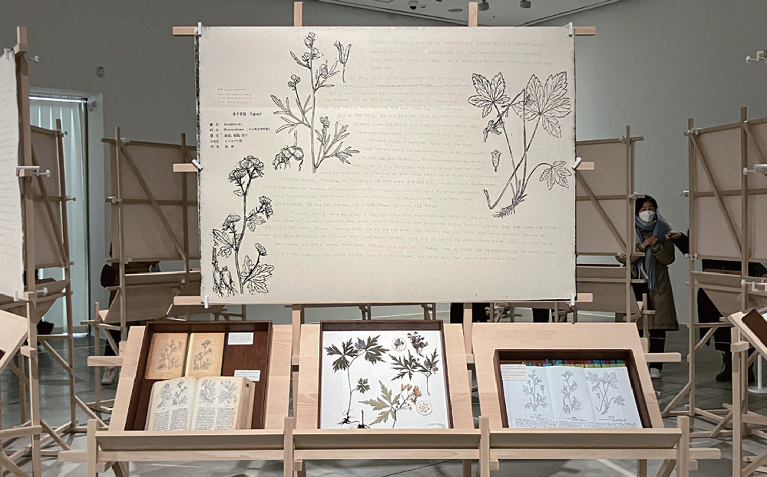 Çѹݵµ ½Ä»ý Á¶»ç °úÁ¤¿¡¼ äÁýÇÑ ½Ä¹°°ú ¿¬±¸ÀڷḦ º¸Á¸¹°°ú µå·ÎÀ×À¸·Î °¡°øÇÑ ¼³Ä¡¹Ì¼ú ÀÛǰÀº ÀÌ·¯ÇÑ Çü½ÄÀû ÆÇ´ÜÀÇ ÃÑü´Ù. ¡®½Ä¹° º¸Á¸¹°¡¯Àº ÀÙ°ú ²É, ¾¾ µî ½Ä¹°ÀÇ ±¸¼º ¿ä¼ÒµéÀ» °¢°¢ º¸Á¸Ã³¸®ÇØ Ç¥º»´ëÁö À§¿¡¼ ÄݶóÁÖÇÑ °ÍÀ¸·Î ÀÚ¿¬»óÅÂÀÇ ½Ä¹°ÀÌ ¾Æ´Ñ, ¿¬±¸ °úÁ¤¿¡¼ ¼±ÅÃµÈ Æ¯Á¤ ¼ø°£(»óÅÂ)µéÀ» ÇϳªÀÇ È¸é À§¿¡¼ ¾Æ¸§´ä°Ô º¸À̵µ·Ï À籸¼ºÇÑ ÀÛ¾÷ÀÌ´Ù. ¸¶Âù°¡Áö·Î ¡®¿¡ÇÇ¼Òµå µå·ÎÀס¯ ¶ÇÇÑ ½Ä¹°À» äÁý, Á¶»ç, °¡°øÇÏ´Â °úÁ¤¿¡¼ ¶°¿À¸¥ ÀÛ°¡ÀÇ ½É»óÀ» ±Û°ú µå·ÎÀ×À¸·Î Ç¥ÇöÇÑ ÀÛ¾÷ÀÌ´Ù. À̴ ǥº»À̶ó´Â Çü½Ä ÀÚü°¡ Áö´Ñ µµ»ó¼º°ú °ü·ÃµÇ´Âµ¥ Ç¥º»Àº °´°üÀû »ç½Ç·Î º¸ÀÌÁö¸¸ ½ÇÁ¦·Î´Â ¼±Åá¤Á¦°Å¡¤¹è¿ °úÁ¤¿¡¼ Á¦ÀÛÀÚÀÇ Á¤¼¿Í ÁÖ°üÀÌ ¹Ý¿µµÈ °á°ú¹°·Î, Áö½ÄÀ» »ý»êÇÏ´Â µµ±¸ÀÎ µ¿½Ã¿¡ ½Ã°¢Àû¡¤Çü½ÄÀû ±¸¼ºÀ» ¿ä±¸ÇÑ´Ù. ÀÌ·¯ÇÑ °üÁ¡¿¡¼, ÀÌ ¼³Ä¡ ÀÛ¾÷Àº ÀÛ°¡ÀÇ ¿¬±¸·ÎºÎÅÍ µµÃâµÈ ºÐ·ùÀÇ ¹æ½Ä°ú ¼±ÅÃÀÇ ±âÁØ¿¡ µû¶ó Ç¥º»À» Àç¹è¿ÇÏ´Â Çü½ÄÀû ÆÇ´ÜÀ» ÅëÇØ ¿¬±¸°¡ µµ´ÞÇÑ »óŸ¦ ¿¹¼úÀÇ Çü½ÄÀ¸·Î ³²±ä °ÍÀ̶ó ÇØ¼®ÇÒ ¼ö ÀÖ´Ù.