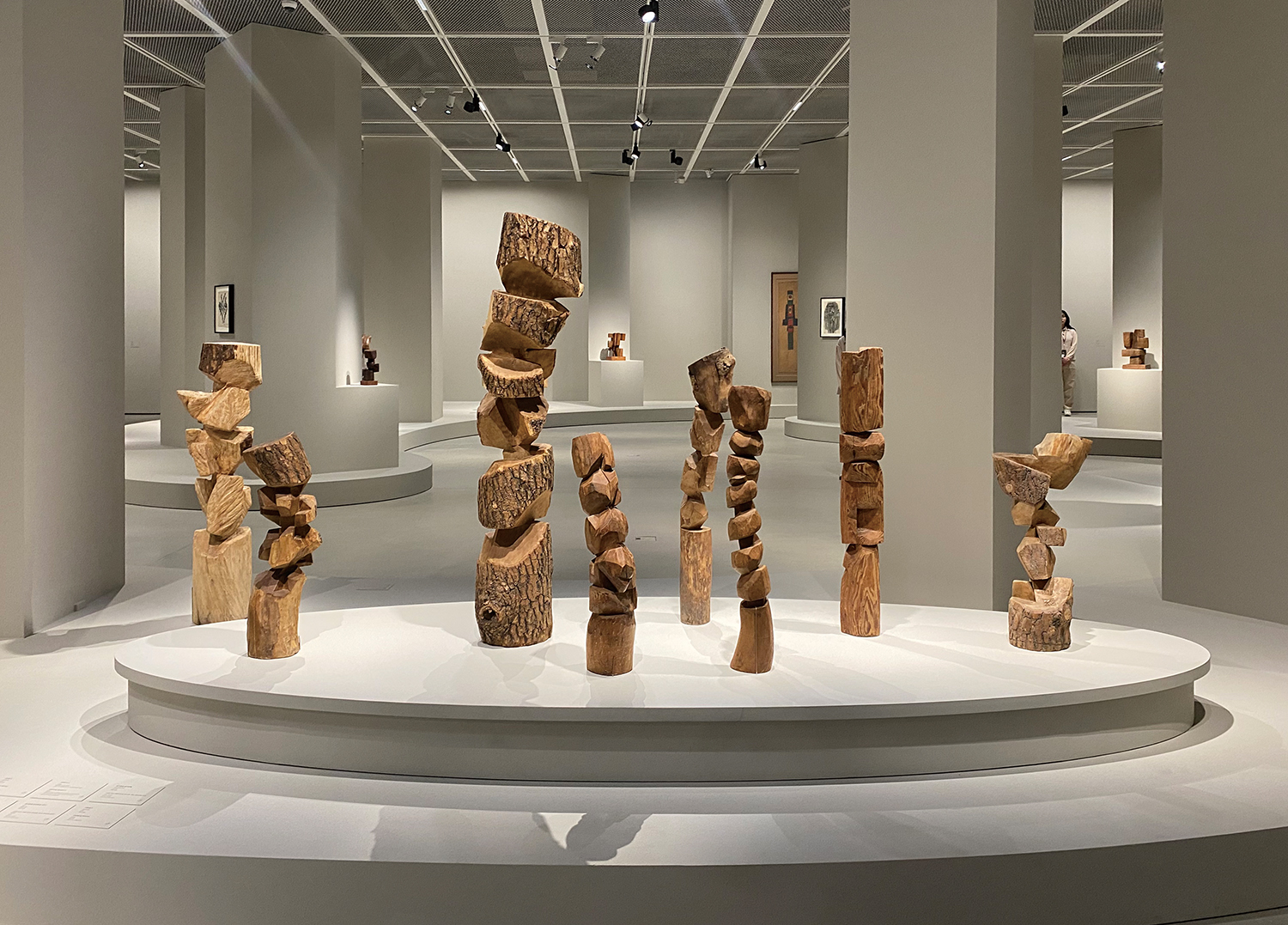 2Ãþ Àü½Ã½Ç¿¡¼´Â ±èÀ±½Å Á¶°¢ÀÇ ¶Ç ´Ù¸¥ ÃàÀÎ µ¹Á¶°¢°ú 2000³â´ë ÀÌÈÄ·Î ´Ù¾çÇÑ ¾ç»óÀ¸·Î Àü°³µÈ ³ª¹«Á¶°¢µéÀ» º¼ ¼ö ÀÖ´Ù. 1989³â°ú 2001³â ÀÛ°¡´Â ¸ß½ÃÄÚ¿Í ºê¶óÁúÀÇ Ã¤¼®Àå¿¡ Àå±â°£ ü·ùÇÏ¸ç ¿À´Ð½º¸¦ ºñ·ÔÇÑ ¿ø¼®µéÀ» ±â°è·Î ÀÚ¸£°í, Á¤°ú ¸ÁÄ¡·Î µÎµå·Á ¸¸µç »õ·Î¿î ÇÕÀÌÇÕÀÏ ºÐÀ̺ÐÀÏ ½Ã¸®Á ¸¸µé¾î³½´Ù. ÀÌ´Â »õ·Î¿î Á¶Çü ¾îÈÖ°¡ µÇ¾î 1990³â´ë ÀÌÈÄ ³ª¹«Á¶°¢µéÀÇ Ç¥Á¤À» ´Ù¾çÇÏ°Ô º¯È½ÃŲ´Ù. 2000³â´ë Ãʱ⠱èÀ±½ÅÀÇ ³ª¹«Á¶°¢¿¡¼´Â ¾Æ¸£ÇîÆ¼³ª ¿øÁֹΠ¸¶ÇªÃ¼ ºÎÁ·ÀÇ ¿µÇâÀ» ¹ÞÀº »öä¿Í ¹®¾çÀ» ¹ß°ßÇÒ ¼ö ÀÖ´Ù. ÀÌÈÄ Äڷγª¹ÙÀÌ·¯½º°¨¿°Áõ-19 ÆÒµ¥¹Í ±â°£ µ¿¾È ÀÛ°¡´Â ¸ñÀç Á¶°¢ ÇϳªÇϳª¸¦ ĵ¹ö½º·Î »ï¾Æ ´õ Àû±ØÀûÀ¸·Î ä»öÇϱ⠽ÃÀÛÇÑ´Ù. ÀÌ ½Ã±âÀÇ ÀÛǰÀº Àç·á ¼ö±ÞÀÇ ¾î·Á¿òÀ¸·Î ÀÛǰÀ» ¸¸µé°í ³²Àº Æó¸ñÀ̳ª Àα٠°ÇÃà ÇöÀåÀÇ Æó¸ñÀ縦 Àç·á·Î ¾´ °ÍÀÌ Æ¯Â¡À¸·Î, º°µé°ú À̾߱âÇϸç ÀÚ¿¬°ú °ø¸íÇÏ´ø ½ÃÀýÀ» ´ã¾Æ³½´Ù. 2ÃþÀÇ ¿ÜºÎ °ø°£¿¡¼´Â ÀÛ°¡ÀÇ ÃÖ±ÙÀÛÀÎ ¡®³ë·¡ÇÏ´Â ³ª¹« 2013-16V1¡¯(2025)µµ º¼ ¼ö ÀÖ´Ù. 2013³â¿¡ ¿Ï¼ºÇÑ ³ª¹«Á¶°¢À» ¾Ë·ç¹Ì´½À¸·Î ij½ºÆÃÇÑ µÚ ¾ÆÅ©¸± ä»öÀ» ´õÇÑ ÀÌ ÀÛǰÀº ±èÀ±½ÅÀÌ °í¾ÈÇÑ È¸È-Á¶°¢ÀÌ´Ù. ÀÛ°¡´Â ÇâÈÄ ²ÞÀÎ ¾ß¿ÜÁ¶°¢ Àü½Ã¸¦ ¿°µÎ¿¡ µÎ°í ÀÌ·¯ÇÑ ¹æ½ÄÀ» ¸¸µé¾î³Â´Ù. ȯ°æ°ú ÀÚ¿¬°úÀÇ °ü°è ¼Ó¿¡¼ ²÷ÀÓ¾øÀÌ º¯ÈÇØ¿Â ±èÀ±½ÅÀ» ¸¸³ªº¼ ¼ö ÀÖ´Â À̹ø Àü½Ã´Â 6¿ù 28±îÁö ÁøÇàµÈ´Ù.