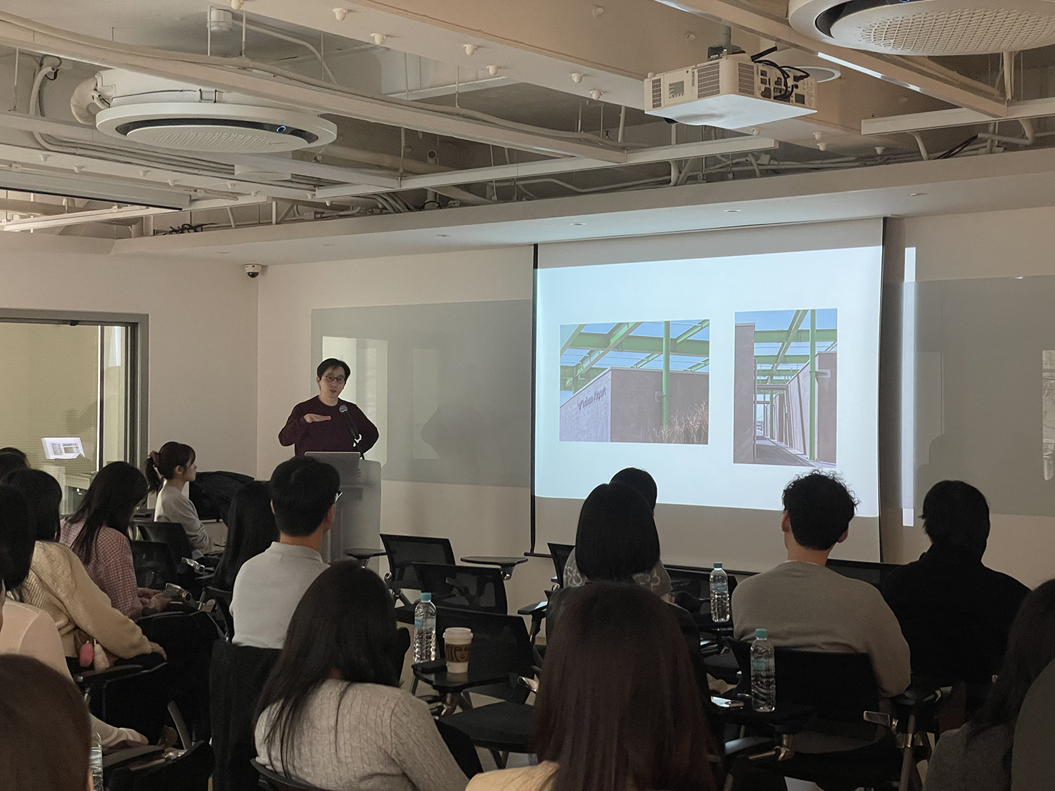 À̹ø °¿¬Àº ¡¸SPACE¡¹ 3¿ùÈ£ ÇÁ·¹ÀÓ ÁÖÀΰøÀÎ ±èÁøÈÞ(°ÇÃà»ç»ç¹«¼Ò ±è³² °øµ¿´ëÇ¥)°¡ ¸Ã¾Ò´Ù. ¡®The Understory¡¯¶ó´Â Á¦¸ñÀÇ À̹ø °¿¬Àº °ÇÃà»ç»ç¹«¼Ò ±è³²(ÀÌÇÏ ±è³²)ÀÇ Çü½Ä ¾ð¾î¸¦ ¼Ò°³Çϱ⺸´Ù ¼·Î ´Ù¸¥ Àå¼Ò¿Í Á¶°Ç ¼Ó¿¡¼ ¹«¾ùÀ» Àоî³Â°í ±×°ÍÀÌ ¾î¶² °ÇÃàÀÌ µÇ¾ú´ÂÁö¸¦ Áß½ÉÀ¸·Î ´ëÇ¥ ÀÛ¾÷µéÀ» ¼Ò°³Çß´Ù. ±×´Â ¹Ì±¹ ´ëÇпø Á¹¾÷ ÈÄ ½ºÀ§½º¿¡¼ ½Ç¹«¸¦ ½ÃÀÛÇÑ °æÇèÀ» µ¹¾Æº¸¸ç, Ãʱ⿡ üµæÇÑ Àç·á °¨°¢°ú Á¦ÀÛ Áö½ÄÀÌ ÇöÀç±îÁöµµ ¿µÇâÀ» ¹ÌÄ¡°í ÀÖ´Ù°í ¸»Çß´Ù. ƯÈ÷ Ç츣Á¶±×&µå ¸þ·Õ¿¡¼ °æÇèÇÑ ¡®À£¸ÞÀ̵塯ÀÇ °¨°¢, Áï ¸ðµç ¿ä¼Ò°¡ ¾Ë¸Â°Ô ÀÛµ¿ÇÏ´Â »óŸ¦ ÇâÇÑ Åµµ°¡ ÀÌÈÄ ÀÛ¾÷ÀÇ ¹Ø¹ÙÅÁÀÌ µÇ¾ú´Ù°í ¼³¸íÇß´Ù.