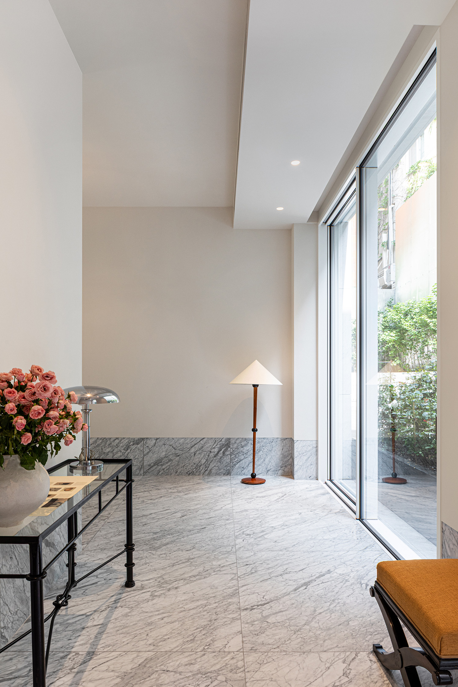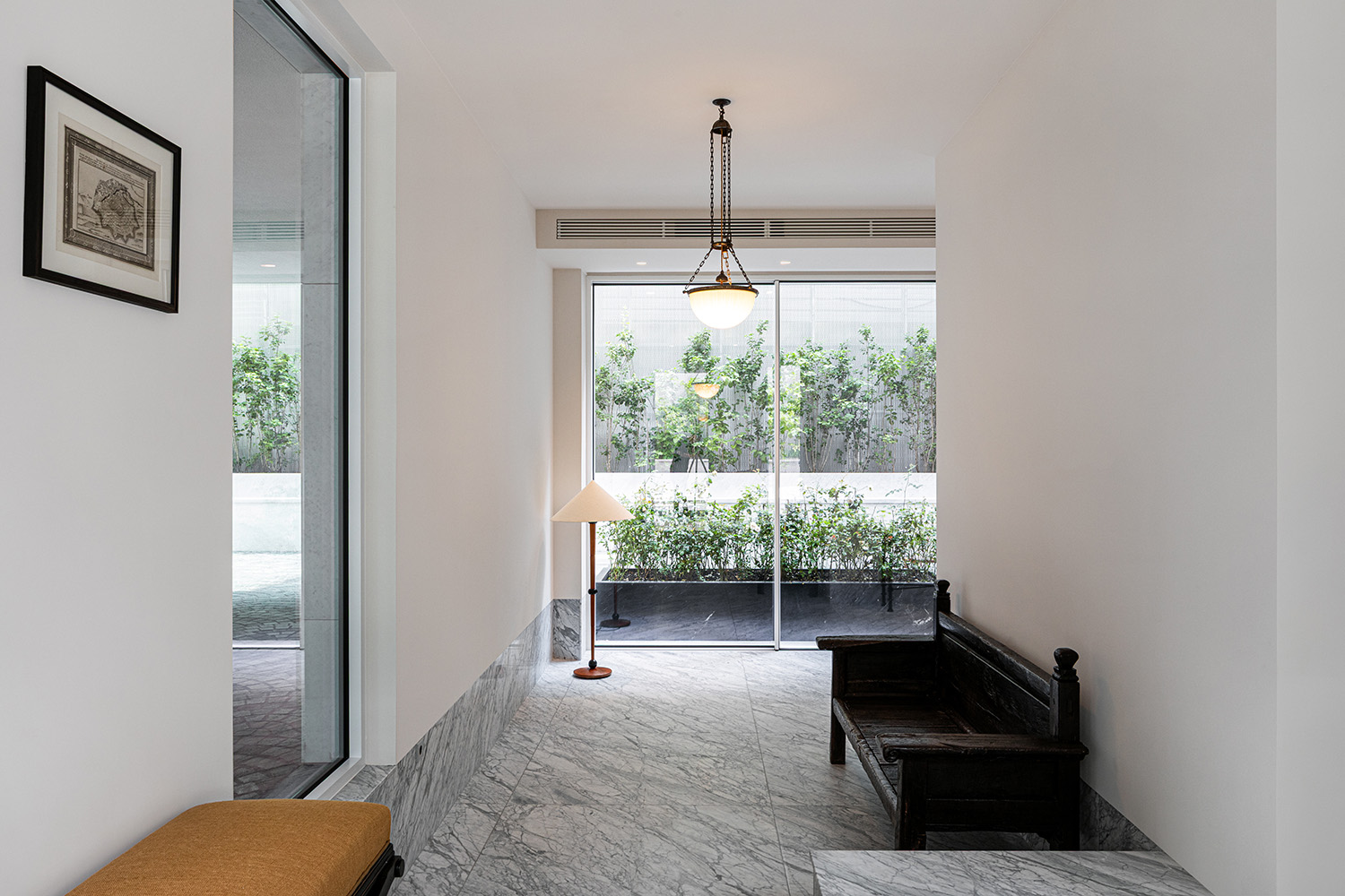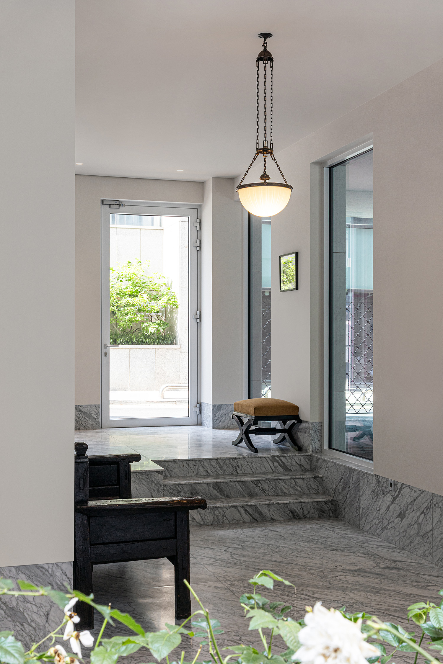 ³»ºÎ·Î À̾îÁö´Â Àç·áÀÇ Áú°¨°ú ¹°¼ºÀº ÀÌ °æÇèÀ» ¿ÜºÎ¿¡¼ ³»ºÎ·Î È®Àå½ÃŲ´Ù. ´Ü¼ø¸í·áÇÏ°Ô Àü°³µÇ´Â °ø°£ÀÇ ±¸Á¶¿Í ¸¶°¨Àº °¢ Ãþ¸¶´Ù Á¶±Ý¾¿ ´Ù¸£°Ô Àû¿ëµÈ Àç·á(¼®Àç/¿ø¸ñ/ÄÜÅ©¸®Æ®)¸¦ ÅëÇØ ±â´É¸¶´Ù ´Ù¸¥ °ø°£°¨À» °¡Áö°í, ºûÀ» ¹Ý»ç, ±¼Àý, »ê¶õ½ÃŰ´Â ¹ÝÅõ¸íÇÑ À¯¸®¿Í °Å¿ïÀ» ÅëÇØ ³»ºÎ °ø°£ÀÌ µÚ¾û۰ÔÇϰųª È®Àå½ÃŰ¸ç °ø°£ÀÇ ¿Âµµ¿Í ºÐÀ§±â¸¦ ´Ù¾çÇÑ °¨°¢µé·Î Áö°¢ÇÏ°Ô ÇÑ´Ù. ´ë¸®¼® °è´Ü, °æÁúÀÇ ¾îµÎ¿î ¸ñÀç¿Í öÀç·Î ±¸¼ºµÈ ³°£, µµ¾îÀÇ ÇÚµé, Á¶¸íµé, ±×¸®°í ¾ÕÀ¸·Î ºó °ø°£À» Çʿ信 µû¶ó Çϳª¾¿ ä¿ö°¥ ¿ÀºêÁ¦µéÀº °ø°£À» ±¸¼ºÇÏ´Â Àç·áÀÇ ¹°¼º°ú ¾î¿ì·¯Áö¸ç ºê·£µå°¡ ÁöÇâÇÏ´Â °¡Ä¡¸¦ ´ã´ãÇÏ°Ô µå·¯³»´Â ±â´ÉÀûÀÏ ¼ö ¹Û¿¡ ¾ø´Â Àå½ÄµéÀÌ µÉ °ÍÀÌ´Ù.