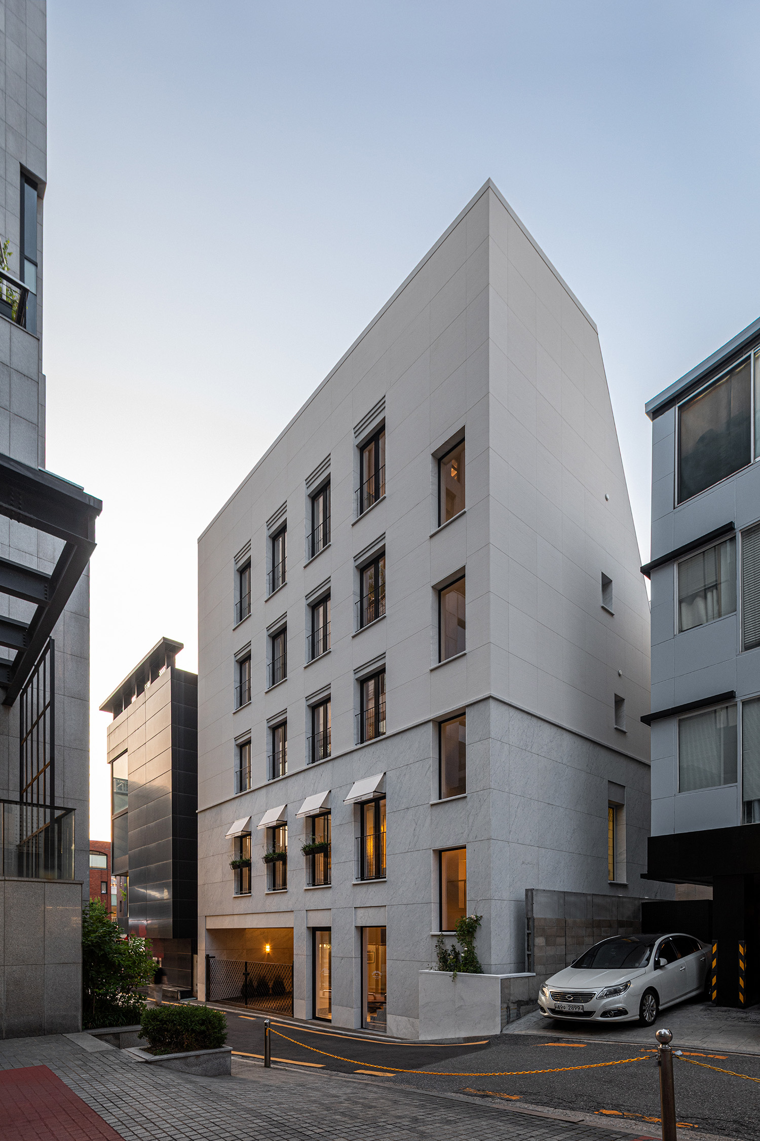 ³×¸ð ¹ÝµíÇÑ ÇüÅÂÀÇ ¹àÀº ÅæÀÇ ¿Ü°üÀº ¿ì¸® ÁÖº¯ÀÇ ¿©´À °Ç¹°°ú Å©°Ô ´Ù¸£Áö ¾Ê´Ù. ¾îµð¿¡³ª ÀÖÀ» ¹ýÇÏÁö¸¸, Á¶±Ý¸¸ ÁÖÀǸ¦ ±â¿ï¿© µé¿©´Ù º¸¸é »õ»ï ´«¿¡ ¶çÁö ¾Ê´ø °ÍµéÀÌ º¸ÀδÙ. ¾ð¶æ ºñ½ÁÇØ º¸ÀÌÁö¸¸ ¹Ì¹¦ÇÏ°Ô ³¸¼± ¸¶°¨°ú °¡°ø ó¸®ÇÑ ¿Üº®ÀÇ Àç·áµé. ±× »çÀÌ·Î µå¹®µå¹® ÀÚ¸®ÀâÀº Åõ¹ÚÇÑ Ã¢ ÁÖÀ§·Î ±íÀ̰¨°ú ÀÔü°¨À» ¸¸µå´Â °ã°ãÀÇ ÀÎ¹æ µðÅ×ÀÏ. ±×¸®°í ¾à°£ ±Í¿±±â±îÁö ÇÑ Ã¢È£ µÎ°Ì¼®, âȣ ÇÁ·¹ÀÓ°ú ¦À» ÀÌ·ç´Â öÀç ³°£ µî ÃÖ¼Ò ´ÜÀ§ÀÇ °ÇÃàÀû ¿ä¼ÒµéÀÇ ´Ùä·Ó°í ¼¼¹ÐÇÑ Á¶À²À» °ÅÃÄ °¨°¢ÀûÀÎ Àç·á¿Í Áú°¨À¸·Î ¹ö¹«·ÁÁ® ½Ã¼±À» ¸Ó¹«¸£°Ô Çϴµ¥, ÀÌ´Â ´Ù¼Ò ´ÜÁ¶·Î¿ï ¼ö ÀÖ´Â Á¶Çü¼º¿¡ ÇØ»óµµ¸¦ ³ôÀ̸ç ÁÖº¯ÀÇ ¿©Å¸ °Ç¹°µé°ú´Â ´Ù¸¥ ¹æ½ÄÀ¸·Î ÀÌ¿ëÀÚÀÇ °¨°¢À» ÀÚ±ØÇÑ´Ù. ÀÌ´Â »ç¹°ÀÇ º»Áú°ú ¹ÌÇÐÀ» ´ã¾Æ³»°í ±º´õ´õ±â ¾øÀÌ ´Ü¼øÇϸ鼵µ ±â´É¿¡ Ãæ½ÇÇϰíÀÚ ÇÏ´Â ºê·£µåÀÇ Á¤Ã¼¼ºÀ» °ÇÃàÀû ¾ð¾î¸¦ ¸Å°³·Î ±¸ÃàÇϰí, °ø°£À» ÅëÇØ ±× °¨¼ö¼ºÀ» °æÇèÇÏ°Ô ÇÏ·Á´Â Ç÷¡±×½Ê ½ºÅä¾îÀÇ Àǵµ¿Í ±× ¸Æ¶ôÀ» °°ÀÌÇϱ⵵ ÇÑ´Ù.