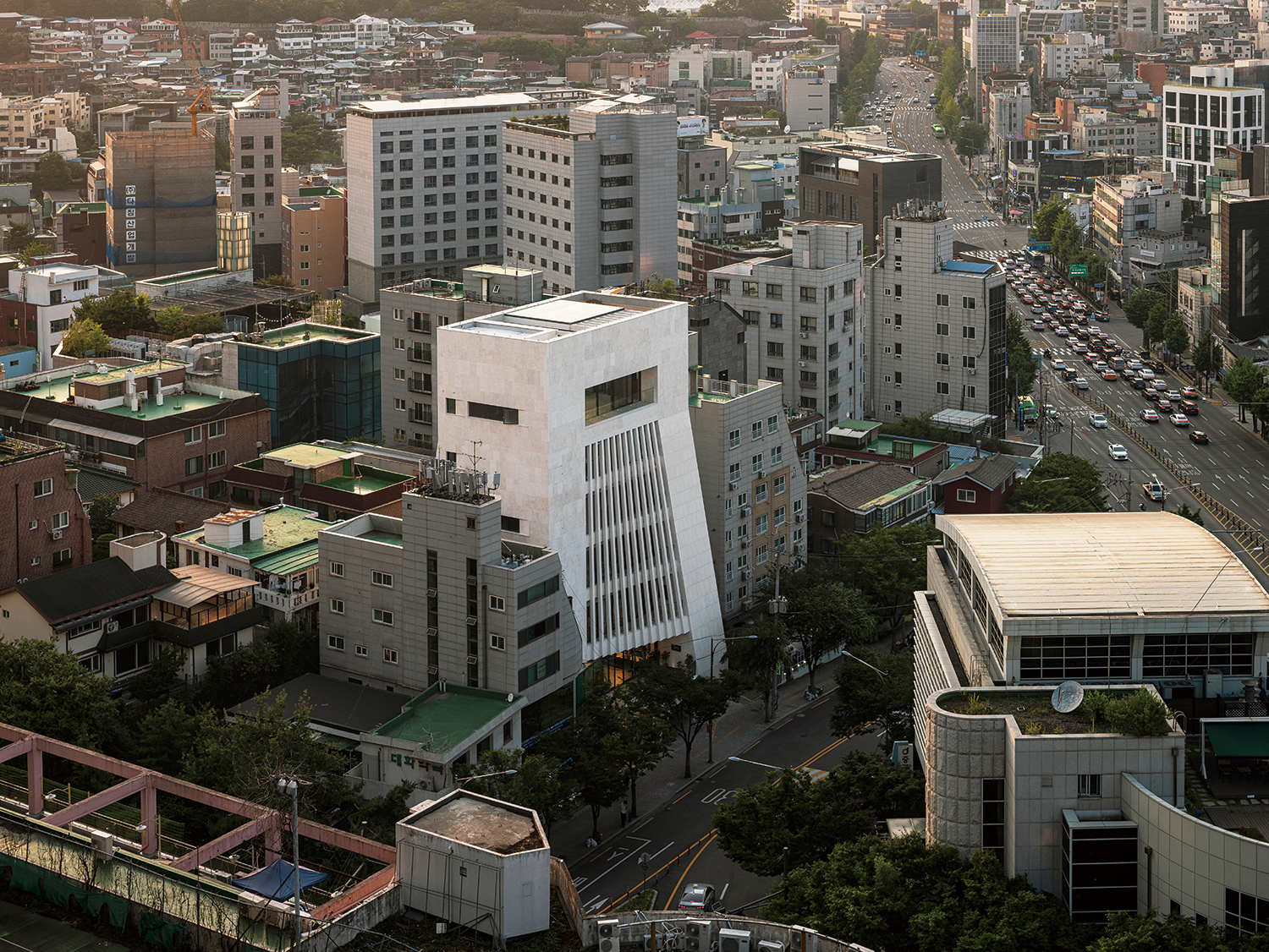 ¼¿ïÀÇ °Ç¹° ´Ù¼ö´Â 1ÃþÀ» Â÷·®À» À§ÇÑ ÇÊ·ÎÆ¼·Î ºñ¿öµÐ´Ù. ÀÌ·Î ÀÎÇØ °Å¸®´Â ´ÜÀýµÇ°í »ç¶÷µéÀº ¸Ó¹«¸£±â ¾î·Æ´Ù. µµ½Ã´Â °¡Àå Ȱ¹ßÇØ¾ß ÇÒ Ãþ¿¡¼ ħ¹¬ÇÏ°Ô µÇ°í, °ÇÃàÀº °Å¸®¿ÍÀÇ °ü°è¸¦ »ó½ÇÇÑ´Ù. F&L »ç¿ÁÀº ÀÌ·¯ÇÑ ÀüÇüÀ» °ÅºÎÇϰí, ´ëÁöÀÇ °æ»ç¸¦ ²ø¾î¾È´Â ¿¬¼ÓÀû Æ÷µð¿òÀ» Á¦¾ÈÇß´Ù. Æ÷µð¿òÀº ´Ü¼øÇÑ ÁÖÂ÷ °ø°£ÀÌ ¾Æ´Ï¶ó ¼·Î ´Ù¸¥ ·¹º§À» ¸Å²ô·´°Ô ¿¬°áÇÏ´Â ´ÙÃþÀû ÀåÄ¡´Ù. °æ»ç¸¦ µû¶ó Á¶°¢µÈ °è´ÜÀº ±¤ÀåÀ¸·Î À̾îÁö°í, Ä«Æä¸¦ °ÅÃÄ ÃÖÁ¾ÀûÀ¸·Î ¾È¶ã¿¡ µµ´ÞÇÑ´Ù. ÀÌ ¿¬¼ÓÀûÀÎ ½ÃÄö½º´Â ´Ü¼øÇÑ À̵¿À» °æÇèÀ¸·Î ¹Ù²Ù¸ç, ¸ØÃß°í ¸¸³ª°í Áö³ª°¡´Â ÇàÀ§°¡ °ÇÃà ¾ÈÆÆ¿¡¼ ÀÚ¿¬½º·´°Ô ¹ß»ýÇÑ´Ù. µµ½Ã¿Í °ÇÃàÀÇ °æ°è´Â Á¡ÁøÀûÀ¸·Î Èå·ÁÁö°í, ¿¸° ¹«´ë·Î¼ Æ÷µð¿òÀº °ÇÃàÀÇ ...
