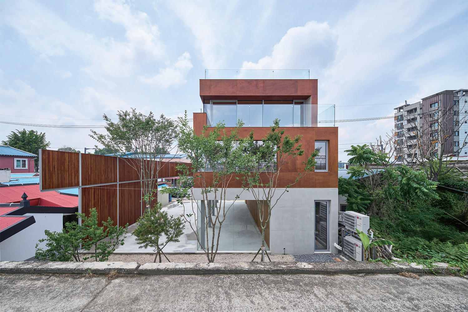 °Ç¹°Àº ´ëÁö°¡ µÏ±æ(¹é¸¶°)°ú µµ·Î¿¡ ¿¸®µµ·Ï µ¿¼·Î ±æ°Ô ¹èÄ¡Çß´Ù. ±×·¸°Ô ºñ¿î ´ëÁö ³²ÂÊ ÆíÀº µÏ±æ°ú µµ·Î ¹æÇâÀ¸·Î ¿¸°, ·ç¹ö ´ãÀåÀ¸·Î °¨½Õ´Ù. °Ç¹°Àº °¡·Î¿¡¼ ÃÖ¼ÒÀÇ Á¤¸éÀ» ÃëÇϸç, ºµÀÌ Àß µå´Â ´ëÁö ÇÑ ÆíÀ» ¿¸° ¸¶´çÀ¸·Î ³»¾îÁØ´Ù. 1Ãþ ±Ù¸°»ýȰ½Ã¼³Àº ¸¶´çÀ¸·Î ¿¬ÀåµÇ´Â ¡®¤§¡¯ÀÚ ÄÜÅ©¸®Æ® ´Ü¸é¿¡ ´ã±ä Åõ¸íÇÑ °ø°£À¸·Î ¸¸µé¾ú´Ù. ¸ð¼¸®°¡ ¿¸° ·ç¹ö ´ãÀå(¸¶´ç)°ú ÇÔ²² µµ·Îº¯¿¡¼ ȯ´ëÀÇ Á¦½ºÃ³¸¦ ÃëÇϱâ À§Çؼ´Ù.