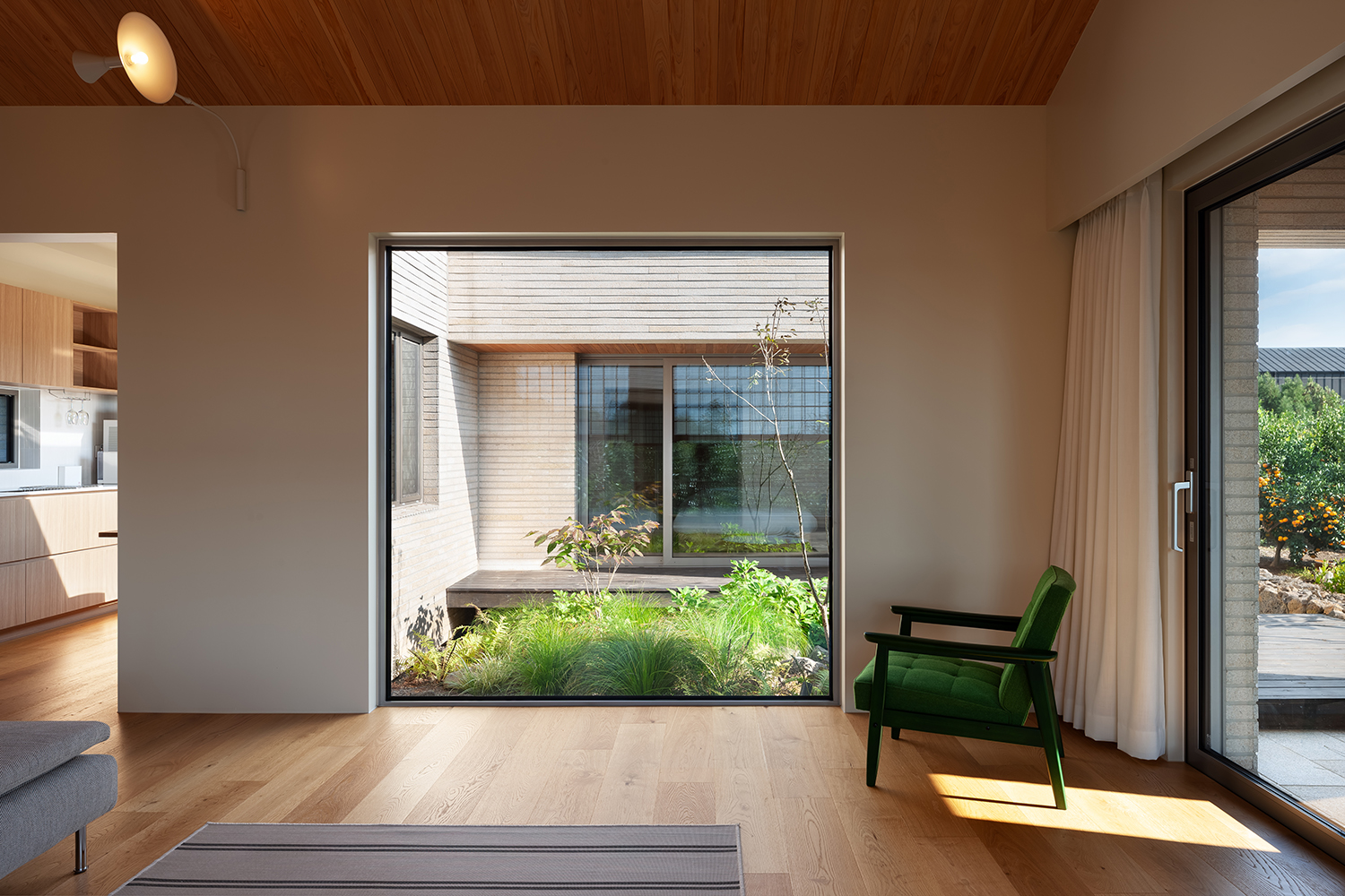 ¶Ç ¿ì¸®°¡ ȵηΠ»ï°í ÀÖ´Â Á¦ÁÖ¸¦ Æ÷ÇÔÇÑ Çѱ¹Àû Á¤¼¸¦ Çö´ëÀû Àç·á, ¼¾ç½Ä ¸ñ±¸Á¶·Î Ç®¾î ³»º¸·Á´Â ½ÃµµÀÇ ¿¬Àå¼±À̱⵵ ÇÏ´Ù. ¿ì¸®´Â û¼ö ¸ñ¿ùÀ縦 ½ÃÀÛÀ¸·Î ºñ¿ëÀÇ ÇѰè·Î Á߸ñ ±¸Á¶¸¦ Àû±ØÀûÀ¸·Î »ç¿ëÇÒ ¼ö ¾ø´Â °æ¿ì °æ·® ¸ñ±¸Á¶·Î ÇÑ¿ÁÀÇ ºÐÀ§±â¸¦ ¸¸µé¾îº¸´Â ÀÛ¾÷À» Çϰí ÀÖ´Ù. ÀÌ Áý¿¡¼ ¶ÇÇÑ ¶¥ÀÇ Çü»óÀ» µû¸¥ ¹èÄ¡, °¡¿îµ¥ ¸¶´çÀ» ǰÀº Æò¸é, ÄÀ¸·Î ³ª´©¾îÁø °ø°£, ¸ðµç ½Ç¿¡¼ ¸¸³ª´Â ÀÚ¿¬ µîÀ» ¿°µÎ¿¡ µÎ°í °èȹÀ» ÁøÇàÇÏ¿´´Ù.