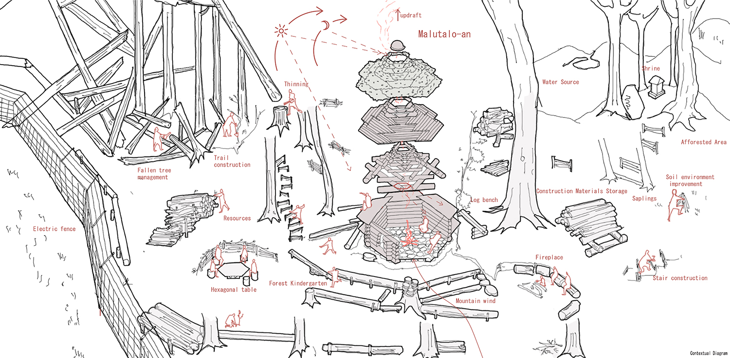 ¸ñ·Î¾ÏÀº »ê¸²È¯°æÁ¤ºñȰµ¿ÀÇ °ÅÁ¡ÀÌÀÚ ½º¸ðÅ© »ç¿ì³ª ±×¸®°í ½£ À¯Ä¡¿øÀ¸·Î¼, »ç¶÷µéÀÌ ´Ù½Ã µ¹¾Æ¿Í ½£°ú °ü°è¸¦ ¸ÎÀ» ¼ö ÀÖ´Â Àå¼Ò·Î ÀÛµ¿ÇÑ´Ù. ½Ã°ø ÁßÀÌ´ø Å볪¹«¿¡ »ç¶÷µéÀÌ ¾É¾Æ ºÒÀ» µÑ·¯½Î¸ç ½¬¾ú°í, ¾ÆÀ̵éÀº ±¸Á¶¹°À» ³îÀÌÅÍ »ï¾Æ ¿À¸£³»¸®¸ç ³î±â ½ÃÀÛÇß´Ù. ÁöºØÀÌ ¿Ï¼ºµÇ±â ÀüºÎÅÍ, ÀÌ¹Ì ÇϳªÀÇ ¡®Àå¼Ò¡¯°¡ ¹ß»ýÇÑ °ÍÀÌ´Ù. ÀÌ´Â °ÇÃàÀÌ ¿Ï°ø ÀÌÈÄ¿¡¸¸ Àǹ̸¦ °®´Â ´ë»óÀÌ ¾Æ´Ï¶ó, Çü¼ºµÇ´Â °úÁ¤ ÀÚü·Î »î°ú ¸¸³¯ ¼ö ÀÖÀ½À» º¸¿©ÁØ´Ù. ÀÌ ÀÛÀº °ÇÃàÀº ÀçÇö °¡´ÉÇÑ ¸ðµ¨À̳ª È®Àå °¡´ÉÇÑ ÇØ¹ýÀ» Á¦½ÃÇÏÁö ¾Ê´Â´Ù. ´ë½Å Ä«¸¶´©¸¶¶ó´Â ƯÁ¤ÇÑ ½£, ±× ¾È¿¡¼ ¿òÁ÷ÀÎ »ç¶÷ÀÇ ¸ö, ±×¸®°í ½Ã°£¿¡ µû¶ó ÃàÀûµÈ ÀÛ¾÷ÀÇ °æ·Î¸¦ °í½º¶õÈ÷ ǰ°í ÀÖ´Ù. ¸ñ·Î¾ÏÀº ½£°ú Àΰ£ÀÇ °ü°è¸¦ ´Ù½Ã ¿«´Â ÇϳªÀÇ ÀÀ´äÀ¸·Î¼, Áö±Ýµµ º¯ÈÀÇ ÇѰ¡¿îµ¥¿¡ ¸Ó¹°·¯ ÀÖ´Ù. ÀÌ·¸µí, ¿ì¸®°¡ Áß¿äÇÏ°Ô »ý°¢ÇÑ °ÍÀº ±Ô°ÝÈµÈ ÀÚÀ縦 ¹ÝÀÔÇØ °Ç¹°À» ¿Ï¼ºÇÏ´Â °ÍÀ» Á¾ÂøÁ¡À¸·Î »ï´Â °ÍÀÌ ¾Æ´Ï¶ó, Áö¼ÓÀûÀ¸·Î °ü°è¸¦ ±¸ÃàÇØ ³ª°¡´Â ÀåÄ¡·Î¼ÀÇ °ÇÃàÀ» ¸¸µå´Â °ÍÀ̾ú´Ù.