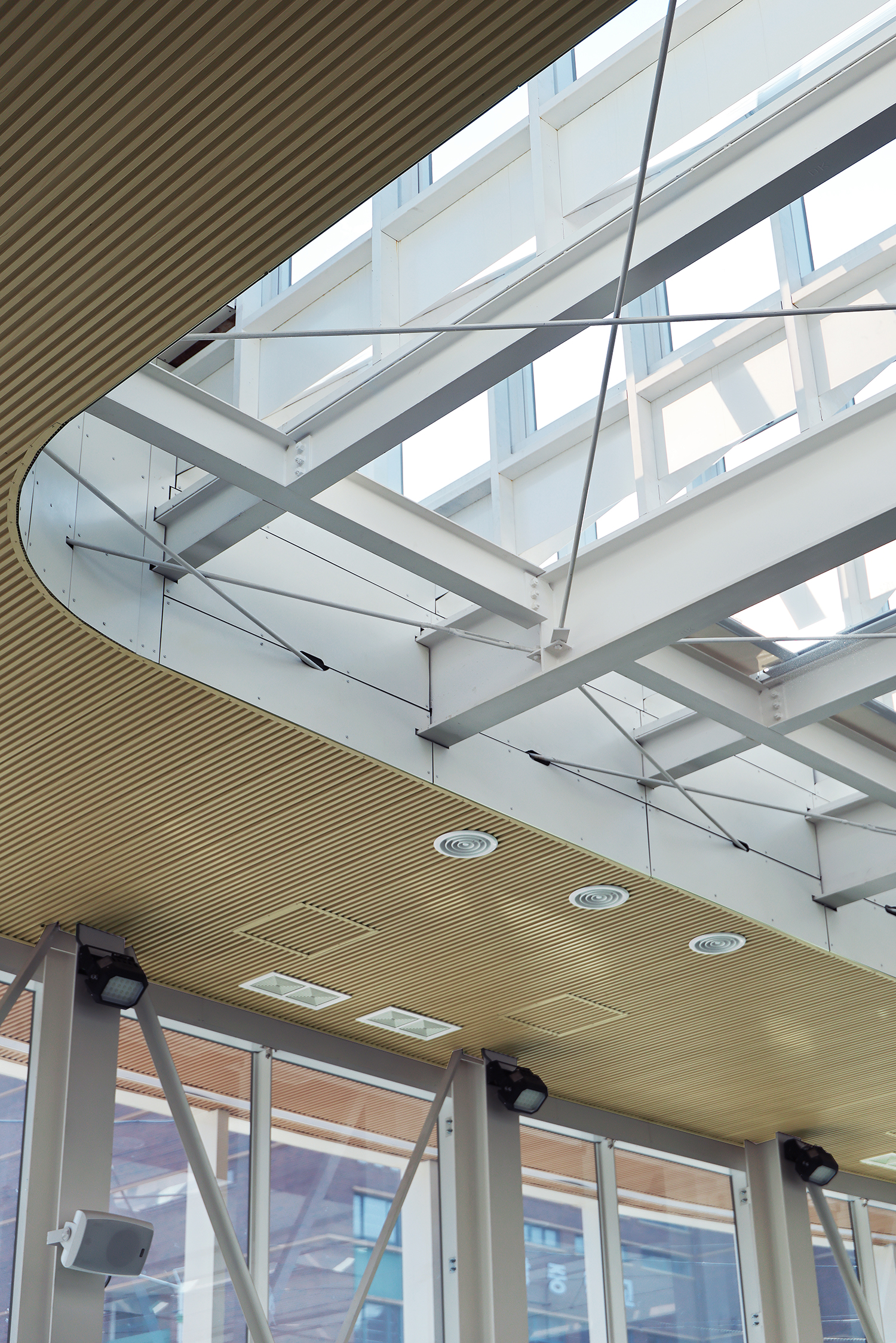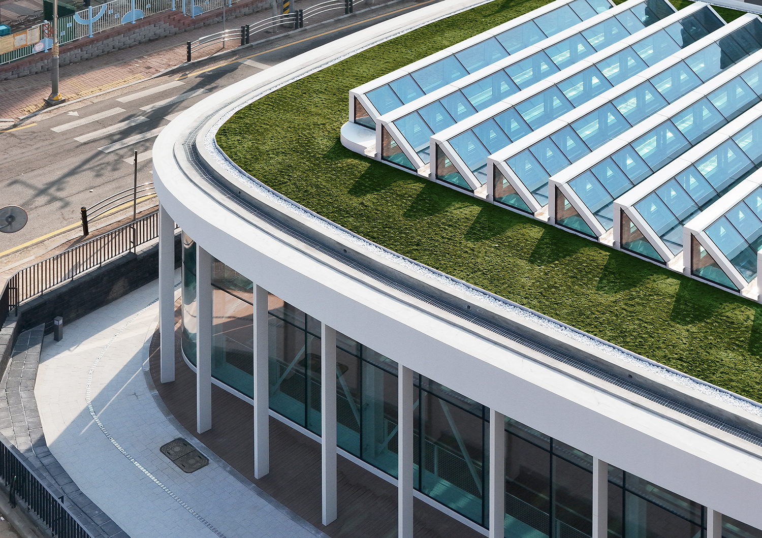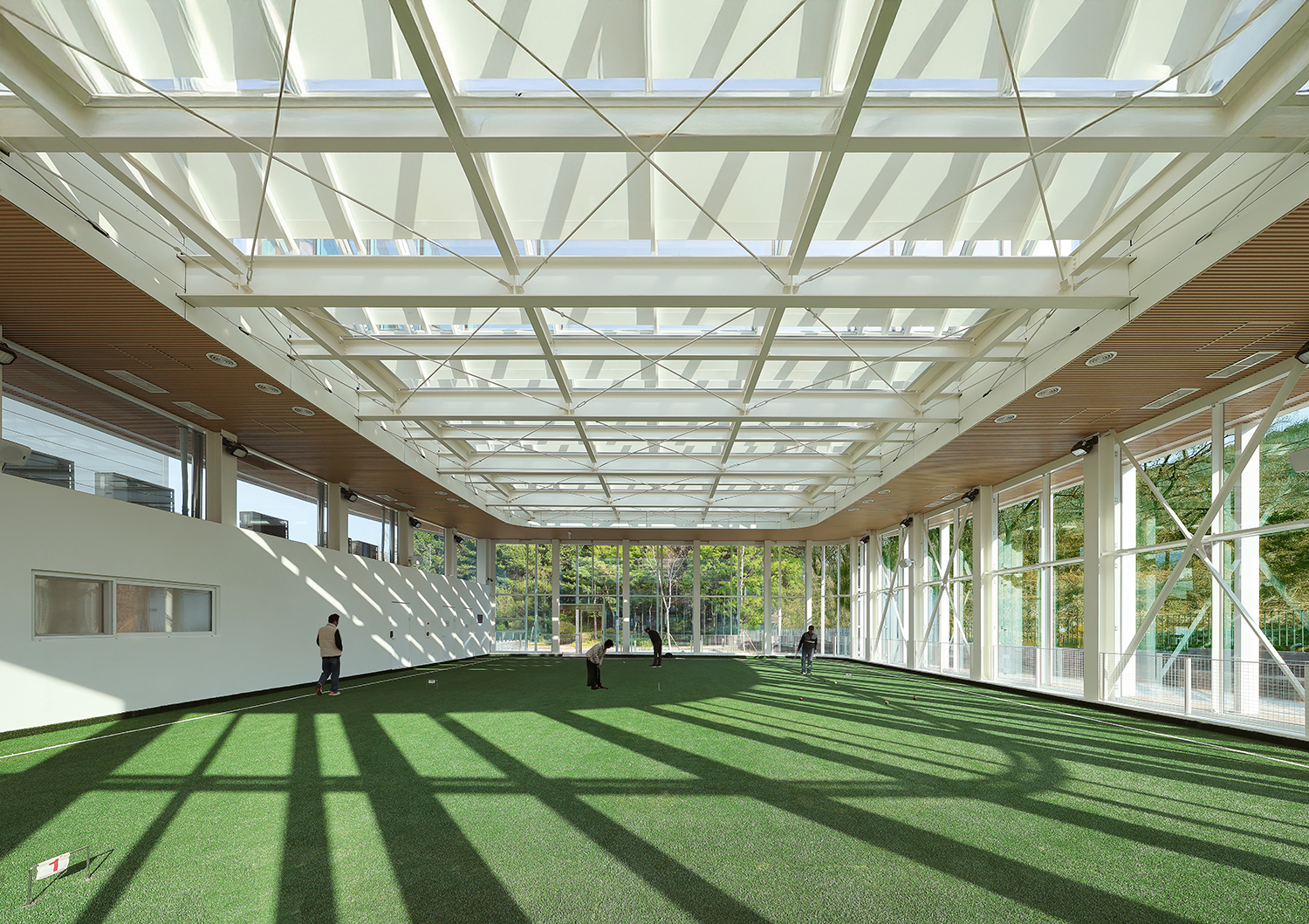 ¹«ÁÖ °ø°£ÀÌ ÇʼöÀûÀÎ °æ±âÀå Æ¯¼º»ó À彺ÆÒÀ» ±¸ÇöÇϱâ À§ÇØ Hºö °ñÁ¶°¡ 1Â÷ÀûÀ¸·Î ÁöºØÀ» ÁöÁöÇÑ´Ù. ¿ÜºÎ ȸ¶û¿¡ ³ª¿µÈ ÇÊ·¯µéÀº ¿ÜÀåÀÌÀÚ ¿ÜÇÇ ±¸Á¶·Î, 2Â÷ÀûÀ¸·Î ÁöºØÀ» ÁöÁöÇÑ´Ù. ÀÌ·¯ÇÑ ÀÌÁß ¿ÜÇÇ ±¸Á¶¸¦ ÅëÇØ ¹«ÁÖ°ø°£À» ±¸ÇöÇÒ ¼ö ÀÖ¾ú°í, ÀÌ´Â ³»ºÎ À¯Ã¼ È帧À» ¿øÈ°ÇÏ°Ô ÇØ ÃÖÀûÀÇ °æ±âȯ°æÀ» Á¶¼ºÇÑ´Ù.