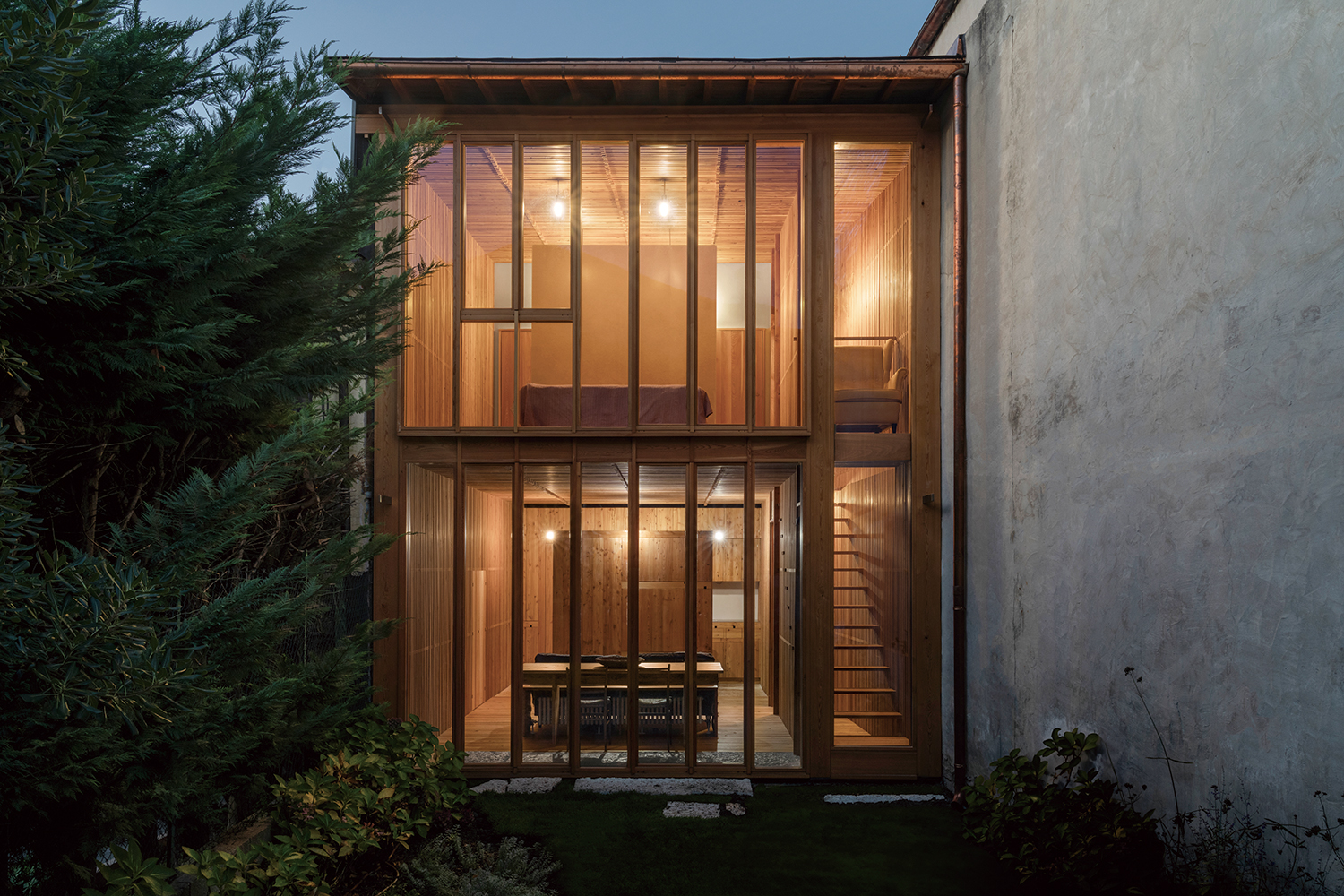 ÀÜÄݶó, Â÷¶óƼ´Ï: ¿ì¸®´Â ±âÁ¸ÀÇ ¿Ü°û ±¸Á¶Ã¼¸¦ º¸Á¸Çϰí, ±×°ÍÀÌ ºÎ°úÇÏ´Â Á¦¾à ¾È¿¡¼ ÀÛ¾÷ÇÏ¸é¼ ±âÁ¸ °Ç¹°ÀÇ ºÐÀ§±â¸¦ À¯ÁöÇϰíÀÚ Çß´Ù. ±¸ÃàÀû °üÁ¡¿¡¼ º¼ ¶§, ±âÁ¸ ¿Ü°û º®Ã¼´Â »õ·Î¿î ±¸Á¶ ½Ã½ºÅÛ ¾È¿¡¼ °¡»õ ¿ªÇÒÀ» ÇÑ´Ù. ¿ì¸®´Â ¼Õ´ëÁö ¾ÊÀº ºÎºÐÀÇ ºÐÀ§±â´Â ±×´ë·Î À¯ÁöÇϸé¼, ÀçÇØ¼®µÈ Àç·á¿Í ÀüÅëÀû ±¸Ãà ¹æ½ÄÀ» ÅëÇØ ±âÁ¸ÀÇ °Í¿¡ °Å´Â(anchoring) ¹æ½ÄÀ¸·Î »õ·Î¿î °³ÀÔÀ» Çß´Ù. ¿©±â¼ °ÇÃà µðÅ×ÀÏÀº °Ç¹°ÀÌ ¾î¶»°Ô ¸¸µé¾îÁ³´ÂÁö¸¦ Á÷Á¢ÀûÀ¸·Î µå·¯³»´Â Ç¥ÇöÀÌ µÈ´Ù.