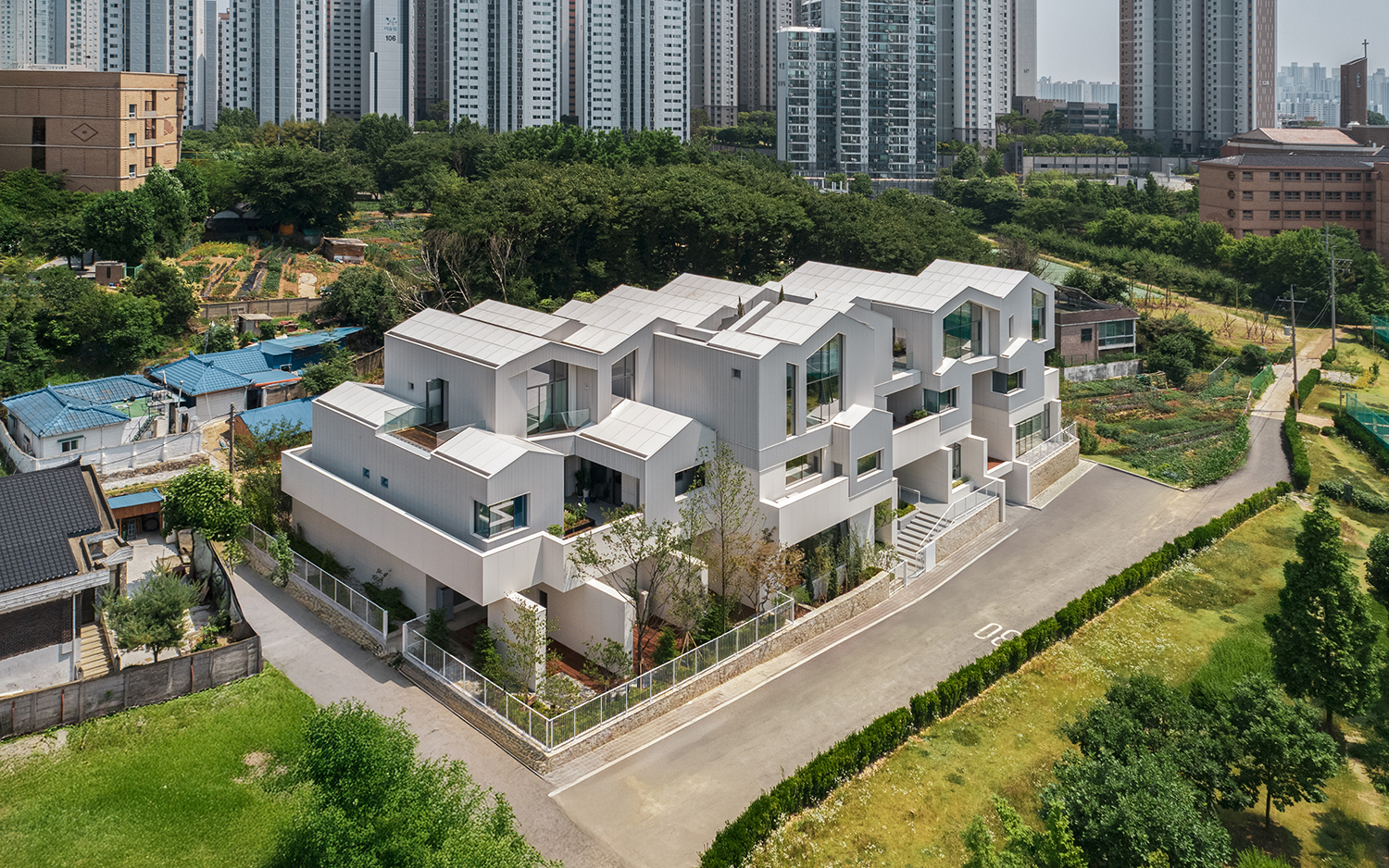 Ä⸣Å׸£ ¿¬¸³ÁÖÅÃÀÇ ÁÖ¿ä °ø°£ÀÎ °ø¿ë °ø°£, °³º° ÁÖ°Å °ø°£, ¿ÜºÎ Á¶°æ, Ä¿¹Â´ÏƼ ½Ã¼³ °¢°¢Àº À£ºù, »î, ÀÚ¿¬, °¡Á·À̶ó´Â Ű¿öµå¿Í ´ëÀÀµÈ´Ù. ³× °¡Áö °ø°£ ¸ðµÎ, »çÀû °ø°£°ú °ø¿ë °ø°£, Àΰø ȯ°æ°ú ÀÚ¿¬È¯°æ µîÀÇ ´ëºñµÇ´Â ¿ä¼Ò°¡ »óÈ£ º¸¿ÏµÇ¸ç ÇϳªÀÇ Á¶È·Î¿î »ýȰ ȯ°æÀ» ±¸¼ºÇϰíÀÚ Çß´Ù. °øÀ¯ ¶ó¿îÁö¸¦ °ÅÃľ߸¸ °³º° ÁÖ°Å °ø°£À¸·Î µµ´ÞÇÒ ¼ö ÀÖµµ·Ï ÇÏ´Â µ¿¼±Àº °ÅÁÖÀÚ °£ ÀÚ¿¬½º·¯¿î ¼ÒÅë°ú ¿ÜºÎ¿¡¼ ³»ºÎ·ÎÀÇ ÀüÀ̸¦ À¯µµÇÑ´Ù. ¶ó¿îÁö¿¡¼ Á¢±ÙÇÒ ¼ö ÀÖ´Â °ø¿ëÁÖ¹æ µîÀÇ ÁÖ¹ÎÆíÀÇ ½Ã¼³Àº ½Ä»ç¡¤¿©°¡¡¤ÈÞ½ÄÀ» ÇÔ²²ÇÏ´Â Á᫐ °ø°£À¸·Î °èȹÇß´Ù. °¢ ¼¼´ë¿¡ ½Ç³»¿Ü ¸¶´ç, µ¥Å©, ÀüÀÌ °ø°£À» °®Ãá °ÍÀº °ø¿ë °ø°£°ú »çÀû °ø°£ »çÀÌÀÇ ½Ã°¢Àû¡¤ÀÎÁöÀû ¿ÏÃæ ¿ªÇÒÀ» Çϱâ À§ÇÔÀÌ´Ù. °ÅÁÖÀÚ´Â ÀüÀÌ °ø°£À» ÅëÇØ ½É¸®Àû ºÎ´ã ¾øÀÌ ¡®ÇÔ²² »ç´Â »î¡¯¿¡ ÀÚ¿¬½º·´°Ô ÀÌÀ﵃ ¼ö ÀÖ´Ù. ÀÔ¸éÀº Àü¸éÀÇ °ø¿ø°ú ÈĸéÀÇ ³ìÁö·Î ¿·Á ÀÖ¾î Àû±ØÀûÀ¸·Î ¿ÜºÎ ȯ°æÀ» À¯ÀÔ½Ã۸ç, Áö¿ª Áö±¸´ÜÀ§°èȹÀ» µû¸¥ ¹Ú°øÁöºØÀ» ÀÔüÀûÀ¸·Î Á¶ÇÕÇÔÀ¸·Î½á ÀԸ鿡 ¸®µë°¨À» ºÎ¿©ÇÑ´Ù. ÁöºØ ÇüŸ¦ ½Ç³»¿¡¼µµ ´À³¥ ¼ö ÀÖ°Ô ÇÑ ¼³°è´Â Àͼ÷...