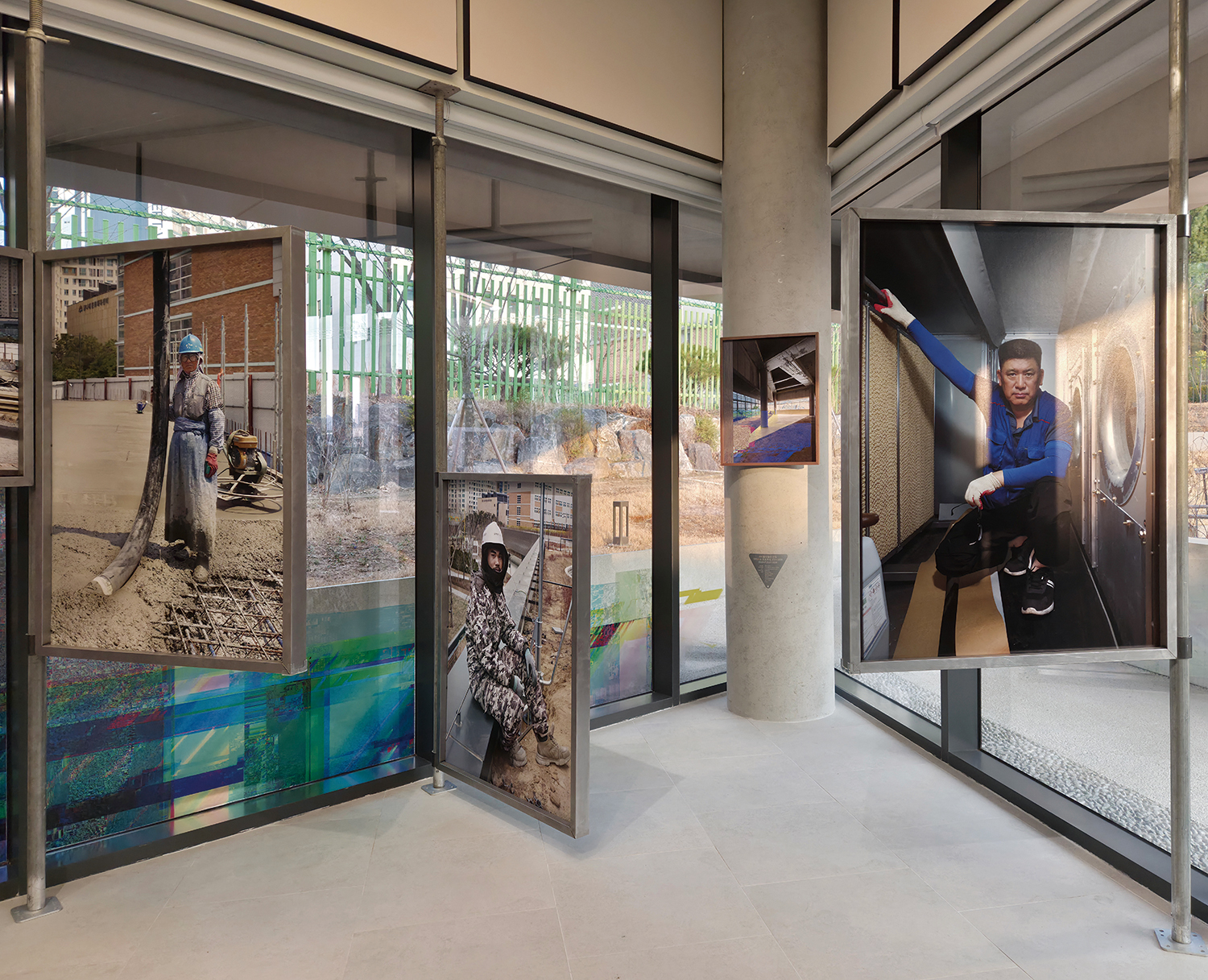 °Ç¸³±â·ÏÀü ¡´¿ì¸®ÀÇ ½Ã°£Àº ¿©±â¼ºÎÅÍ¡µ¡å1´Â ¹Ì¼ú°üÀÇ °Ç¸³ °úÁ¤À» ¾ÆÄ«À̺ùÇϰí, ¼³²±Ç Áö¿ª¿¡ »õ°ÜÁø ½Ã°£ÀÇ ¼»ç¿Í ±â¾ïÀ» Á¶¸íÇÏ´Â Àü½Ã´Ù. Àü½Ã¿¡´Â »çÁø, ¿µ»ó, Áõ°Çö½Ç µî ´Ù¾çÇÑ ¸Åü¸¦ ´Ù·ç´Â ´Ù¼¸ ÀÛ°¡(ÆÀ)°¡ Âü¿©Çß´Ù. ¹Ì¼ú°üÀÇ Æ´»õ °ø°£À» Ȱ¿ëÇÑ À̹ø Àü½Ã´Â 1Ãþ ·ÎºñÀÇ Á¼Àº Åë·Î ³¡¿¡ À§Ä¡ÇÑ ¡®½ºÆ©µð¿À1¡¯¿¡¼ ½ÃÀÛÇØ ¾ß¿Ü °ø°£À¸·Î È®ÀåµÈ´Ù. ¸ÕÀú °·ÄÇÑ ³ì»ö Á¶¸íÀÌ ºñÃߴ ù ¹øÂ° °ø°£Àº ½ÅÁö¼±ÀÇ Áõ°Çö½Ç ÀÛ¾÷À» ¹«ºù À̹ÌÁö·Î ±¸ÇöÇÑ ¹æÀÌ´Ù. ÀÛ°¡´Â ³óÃÌ¿¡¼ µµ½É °ø¾÷Áö´ë·ÎÀÇ °³¹ß, ¾È¾çõ Á¤ºñ, G¹ë¸® Á¶¼º, ´ë±Ô¸ð ¾ÆÆÄÆ® ´ÜÁö °³¹ß µî º¯È¸¦ °Þ¾ú´ø ¼³²±Ç ÀÏ´ëÀÇ ¿ª»ç¿Í À̰÷¿¡ ¼½ÄÇß´ø Á¸ÀçµéÀÇ ±â¾ïÀ» ±æ¾î ¿Ã¸°´Ù. 5°³ ¿¬ÀÛÀ¸·Î ±¸¼ºµÈ ¡®¼¼¿ïÇÇµð¾Æ¡¯´Â ±Þº¯ÇÏ´Â µµ½Ãȯ°æ ¼Ó¿¡¼µµ ²à²àÀÌ ÀÚ¸®¸¦ ÁöŲ »ê, ¿À¿°µÈ ¾È¾çõÀÌ È¸º¹µÈ ÈÄ µ¹¾Æ¿Â ¹°°í±â, ¸¶À»À» ÁöŲ ³ª¹« µî »ýÅ ȯ°æ¿¡ ÁÖ¸ñÇÏ´Â ÇÑÆí, ÀÌ µ¿³×¸¦ ¹è°æÀ¸·Î Á¸ÀçÇßÀ» ¹ýÇÑ °³ÀÎÀÇ ¼»ç¸¦ ÆäÀÌÅ©´ÙÅ¥ ÇüÅ·ΠÀ籸¼ºÇØ º¸¿©ÁØ´Ù. º® Çϳª¸¦ »çÀÌ¿¡ µÎ°í À̾îÁö´Â °ø°£¿¡´Â ±èŵ¿°ú ºêÀÌ¿£¾Ë¡å2ÀÇ »çÁø ÀÛ¾÷ÀÌ ¼Ò°³µÇ¾ú´Ù. ±èŵ¿Àº ¹Ì¼ú°ü °Ç¹°ÀÌ ±¸ÃàµÇ´Â °úÁ¤À» ½Ã±âº°·Î ±â·ÏÇÑ »çÁø»Ó ¾Æ´Ï¶ó, °ø»ç¿¡ Âü¿©ÇÑ ³ëµ¿ÀÚµéÀÇ Àι° »çÁøÀ» ´ëÇü ÇÁ·¹ÀÓ¿¡ ´ã¾Æ ¹Ì¼ú°ü¿¡ ÃàÀûµÈ ³ëµ¿ÀÇ ¼»ç¸¦ µ¿½Ã¿¡ µå·¯³½´Ù. Àü½Ã °ø°£ ¿ª½Ã °ø»ç¿ë °¡¼³ ±¸Á¶¹°·Î ±¸È¹ÇØ ÇöÀå °¨°¢À» ²ø¾î¿Ã¸° °ÍÀÌ Æ¯Â¡ÀÌ´Ù.