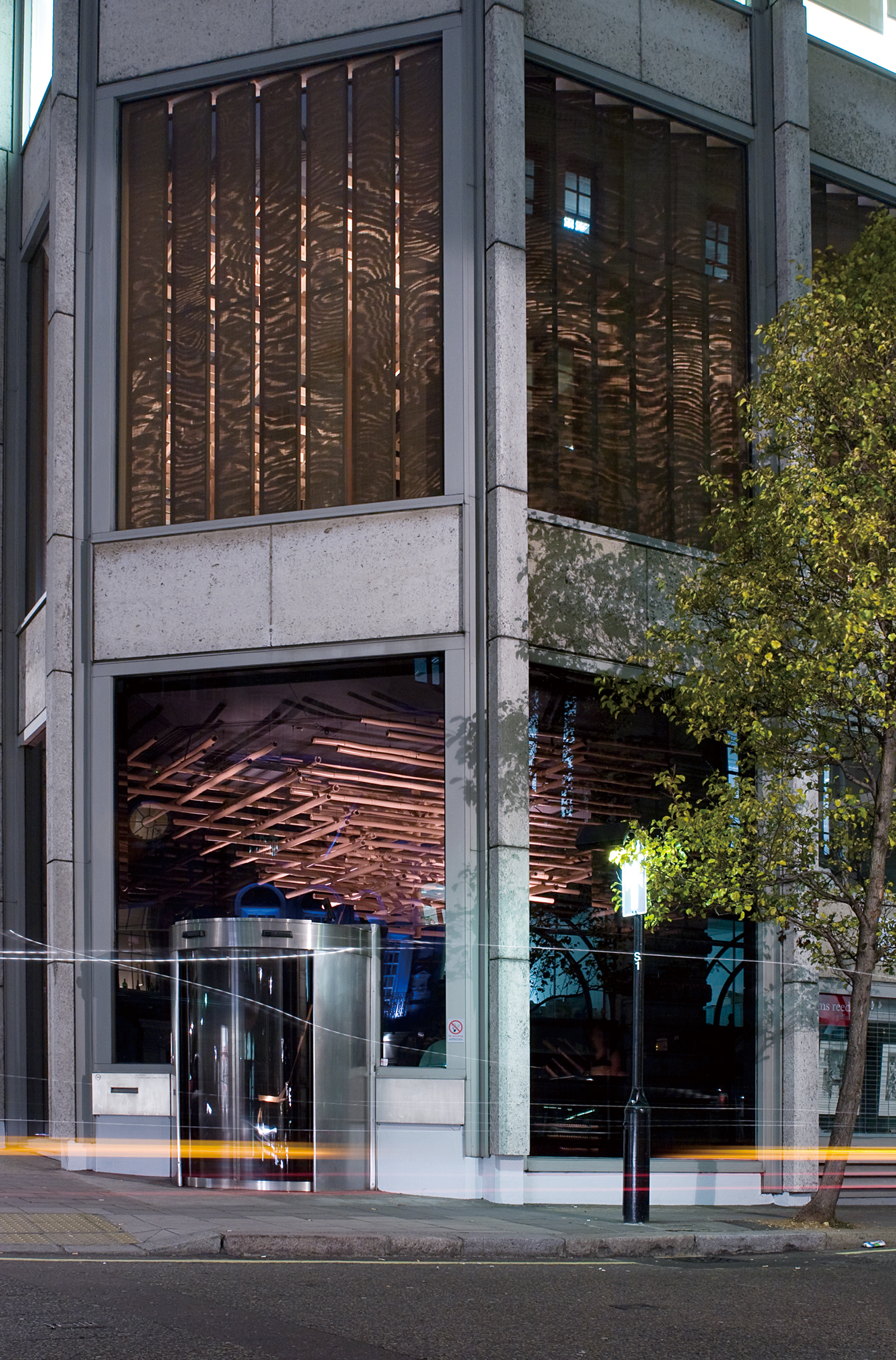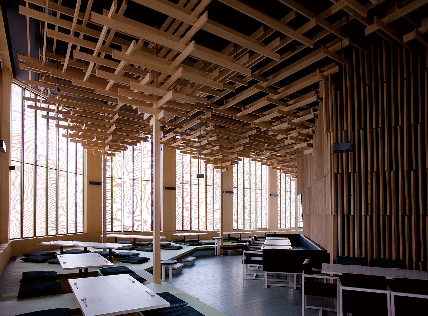 ·±´ø Á߽ɺÎ, ÇÇÅÍ¿Í ¾Ù¸®½¼ ½º¹Ì½¼ ºÎºÎ°¡ ¼³°èÇÑ ¿µ±¹ ¸ð´õ´ÏÁò °ÉÀÛ ÀÌÄÚ³ë¹Ì½ºÆ® ºôµù(1964)ÀÇ ÀúÃþµ¿À» ÀÏ½Ä ·¹½ºÅä¶ûÀ¸·Î ¸®³ëº£À̼ÇÇÑ ÇÁ·ÎÁ§Æ®´Ù. ±¸¸¶´Â ±âÁ¸ °Ç¹°ÀÇ °íµñdz ¿Ü°ü°ú ¼öÁ÷ÀûÀÎ ¼®Àç ÆÐÅÏ¿¡¼ ¿µ°¨À» ¹Þ¾Æ, ÀϺ»»ê Æí¹é³ª¹«¿Í ´ë³ª¹« µî ¾ãÀº ºÎÀ縦 ¿«¾î ½£°ú °°Àº ³»ºÎ °ø°£À» ±¸ÇöÇß´Ù. °³±¸ºÎ¿¡´Â ȸÀü½Ä ´ë³ª¹« ºí¶óÀε带 ¼³Ä¡ÇØ ½Ã¼±°ú ºûÀ» ºÎµå·´°Ô Á¦¾îÇß´Ù. ©Kengo Kuma & Associates