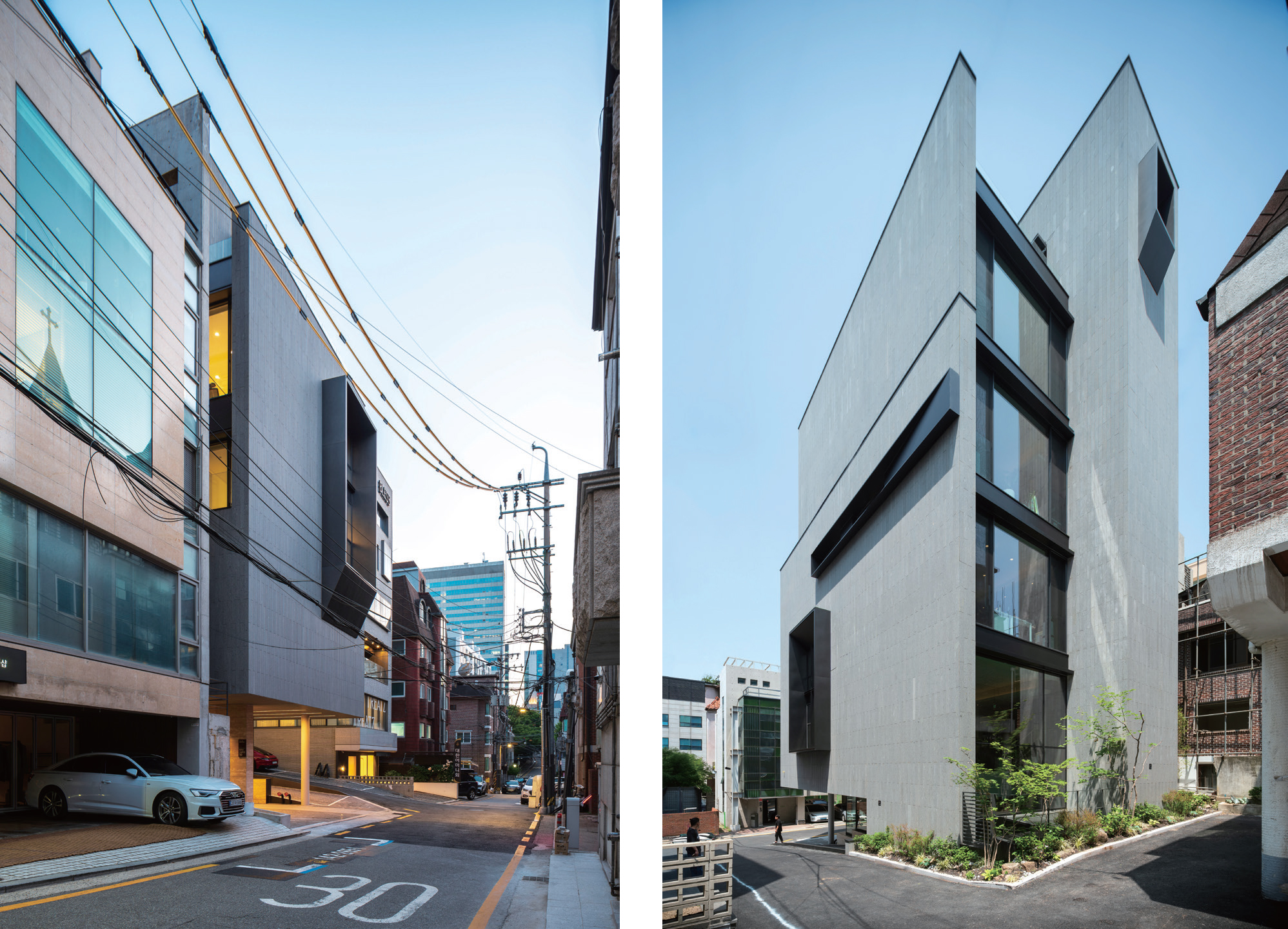 ±è: Á÷¿øµéÀÌ ÀÏ·üÀûÀ¸·Î ¾É¾Æ ÀÏÇÏ´Â °ø°£¿¡¼ ¡®Â÷ÀÌ¡¯¸¦ Áö´Ñ °ø°£À¸·Î ÁøÈÇØ¾ß ÇÑ´Ù°í »ý°¢Çß´Ù. »ç¿ëÀÚµéÀÌ °ø°£À» ¾î¶»°Ô »ç¿ëÇÏ´À³Ä¿¡ µû¶ó ¸¹ÀÌ Á¿ìµÇ±ä ÇϰÚÁö¸¸, °ÇÃà°¡´Â ±× °¡´É¼ºÀ» ¿¾îÁÙ ¼ö ÀÖ´Ù. ´õ³×ÀÌÃÄȦµù½º »ç¿ÁÀº 3mÀÇ ±¸Á¶Àû µÎ²²¸¦ ÀÌ¿ëÇØ ¹ßÄڴϸ¦ ¸¸µé¾î ºñ¿ì°í ä¿ì¸é¼, ¶Ç ÀԸ鵵 ¹Ù²ãº¸¸é¼ °®Àº ½Ãµµ¸¦ Çß´Ù. ¿©·¯ ÇüÅÂÀÇ ´Ü¸éÀ» ¼³°èÇÏÁö´Â ¾Ê¾ÒÁö¸¸ ÀÛÀº °ø°£À» µ¡ºÙ¿© ¡®Â÷ÀÌ¡¯ÀÇ °¡´É¼ºÀ» ³²°ÜµÎ¾ú°í, ÀÌ °ø°£Àº ÀÔ¸é°ú ¿¬°áµÅ ¿ÜºÎ¸¦ ÇâÇØ ´Ù¸¥ ¸ñ¼Ò¸®¸¦ ³½´Ù. ¸¶Ä¡ ¡°¼·Î ´Þ¶óÁöÀÚ¡±°í ¿ÜÄ¡°í ÀÖ´Ù°í »ý°¢ÇÑ´Ù. ´õ³×ÀÌÃÄȦµù½º´Â ¿ °³°¡ ³Ñ´Â ÀÇ·ù ºê·£µå¸¦ ¿î¿µÇϰí Àֱ⿡, ÀÌ·¯ÇÑ »ç¿ÁÀÇ ÀÔ¸éÀº ¸ÞŸÆ÷·Î¼ÀÇ Àǹ̵µ °®´Â´Ù.Á¤µ·µÈ ÇüŸ¦ ¸¸µé°í ½Í¾ú´ø ³ªÀÇ 30, 40´ë ½ÃÀý¿¡´Â ÇÏÁö ¸øÇßÀ» ÀÛ¾÷ÀÌ´Ù. ¾î¶»°Ô º¸¸é °ÇÃà°¡ÀÇ Èıâ ÀÛ¾÷ÀÌ °¡Áø »·»·ÇÔ °°±âµµ ÇÏ´Ù. Á÷½ºÅ×Å©³î·ÎÁö »ç¿ÁÀº Á¶±Ý ´õ ¾äÀüÇÑ ¹æ¹ýÀ¸·Î Ç¥Á¤À» ¸¸µé¾ú´Ù. ³²ÂÊ ÀÔ¸éÀº ±ÕÁúÇÑ Ä¿Æ°¿ùÀÌÁö¸¸ ±æ¿¡¼ º¸ÀÌ´Â ºÏÂʰú ¼ÂÊÀº Ãþ¸¶´Ù ¿ÀÇÁ´×ÀÌ ´Þ¶óÁø´Ù. ±×·¡¼ °¢ Ãþ¿¡ µé¾î°¬À» ¶§ ´Ù¸¥ °ø°£°¨À» ´À³¥ ¼ö ÀÖ´Ù. ¼±ÍÆ÷ »ï´ÙºôµùÀº 8Ãþ °Ç¹°Àε¥ Ãþ¸¶´Ù Æò¸é°ú ÀÔ¸éÀÌ Á¶±Ý¾¿ ´Ù¸£´Ù. ¹«¾ùº¸´Ù ¡®Â÷ÀÌ¡¯¸¦ ¸¸µå´Â ÀÏÀÌ ³ª¿¡°Ô Áß¿äÇß´Ù.