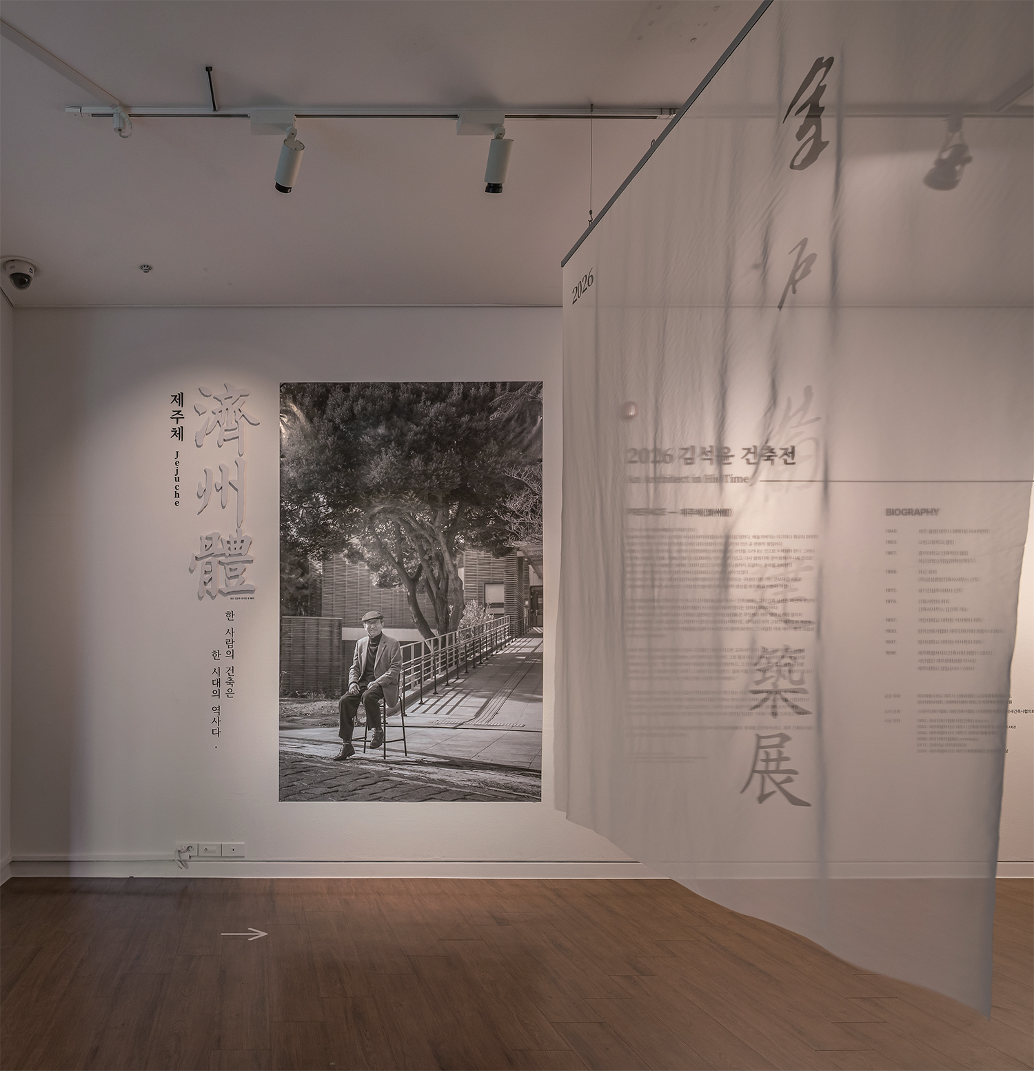 ±×·±°¡ Çϸé À̹ø Àü½ÃÀÇ Å¥·¹ÀÌÅÍ ±èÁöÈñ(±è¿À°ÇÃà»ç»ç¹«¼Ò ´ëÇ¥)´Â Á¦ÁÖÇö´ë¹Ì¼ú°ü °ø°£À» ¹è°æÀ¸·Î ¹«¿ë°¡µéÀÇ ¿òÁ÷ÀÓÀ» ´ãÀº °ÇÃà ¿µ»ó ¡®°ÇÃàÀÌ ¸ö¿¡ ´êÀ» ¶§¡¯(2026)¸¦ ±âȹÇß´Ù. ÀÌ ÀÛ¾÷Àº Á¦ÁÖ¿¡¼ Ȱµ¿ÇÏ´Â ¾È¹«°¡, ¿µ»ó°¨µ¶°ú Çù¾÷ÇØ °ÇÃà ¼Ó¿¡¼ ¹ß»ýÇÏ´Â ¿òÁ÷ÀÓ°ú ¸®µëÀ» ÅëÇØ °ø°£ÀÇ º»ÁúÀ» Ž»öÇÑ´Ù. °ü¶÷°´µéÀº °ø°£ÀÇ È帧°ú ¸Æ¶ôÀ» À¯¿µÇÏ´Â µíÇÑ °¨°¢À» °æÇèÇÏ°Ô µÈ´Ù.