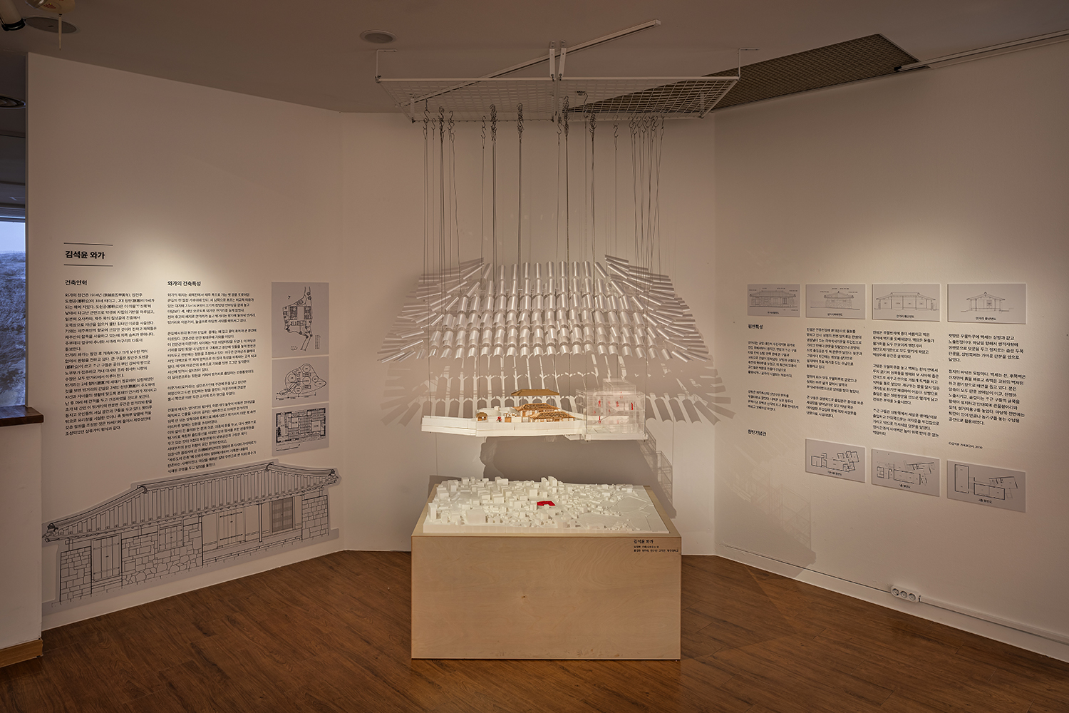 ±è¼®À±ÀÇ Á¦ÀÚ, ±×ÀÇ »ç¹«¼Ò¸¦ °ÅÃİ£ °ÇÃà°¡, ±×ÀÇ ÀÛ¾÷¿¡ ¿µÇâÀ» ¹ÞÀº Â÷¼¼´ë °ÇÃà°¡ 30ÀÎÀÌ Âü¿©ÇÑ ÀÛ¾÷ ¶ÇÇÑ ´«¿©°Üº¼ ¸¸ÇÏ´Ù. Àü½ÃÀå °÷°÷¿¡´Â À̵éÀÌ ¸¸µé¾î³½ °ÇÃà ¸ðÇüÀÌ ÀÚ¸®Çϰí ÀÖ´Ù. Àü½ÃÀå µµÀԺο¡ ¹èÄ¡µÈ ±è¼®À± °¡¿Á(1913)ÀÇ ¸ðÇü¡å2Àº ±è¼®À±ÀÌ Å¾ ÀÚ¶ó¸ç ¿µÇâÀ» ¹ÞÀº Ⱥϵ¿ ±â¿ÍÁýÀÇ °ú°Å¿Í ÇöÀç, ¹Ì·¡¸¦ ´ã¾Æ³½ ÀÛǰÀÌ´Ù. ¸ðÇüÀº Á¦ÁÖ·Î µé¾î¿À´Â °ü¹®À̾ú´ø °ú°Å ȺÏÇ×°ú ÁöÇü ¹èÄ¡, ¾È°Å¸® ¹Û°Å¸®¿Í °°Àº Á¦ÁÖ °ÇÃàÀÇ Æ¯Â¡ÀÌ ´ã±ä °¡¿ÁÀÇ ÇöÀç ¸ð½À, ¾ÆÁ÷ °Ç¸³µÇÁö ¾ÊÀº ±è¼®À±ÀÇ ¼³°è¾È ûź ±â³ä°üÀÇ ¸ð½ÀÀ» ÇÔ²² ´ã¾Æ³Â´Ù. Àç·á, ÁöºØ, ÁöÇü, ÀºÀ¯¿Í »ó¡À̶ó´Â ³× °¡Áö Ű¿öµå¸¦ ÅëÇØ ±è¼®À±ÀÇ °ø°ø °ÇÃ๰À» ´Ù½Ã ¹Ù¶óº» ÀÛ¾÷µéµµ ´«¿¡ ¶è´Ù. °¢°¢ÀÇ ¸ðÇüµéÀº °ÇÃ๰ÀÇ »ó¡Àû ÇüŸ¦ °Á¶ÇØ Á¶Çü¼ºÀ» ¸¸µé°í¡å3 ºÐÀýµÇ¾î ±× ³»ºÎ¸¦ µå·¯³¿À¸·Î½á, °ø°£ÀÇ ³í¸®¸¦ º¸¿©ÁÖ°í¡å4 ÇØÃ¼µÇ¸ç¡å5 »õ·Î¿î °ÇÃàÀÇ Àå¸éÀ» ¸¸µç´Ù.
