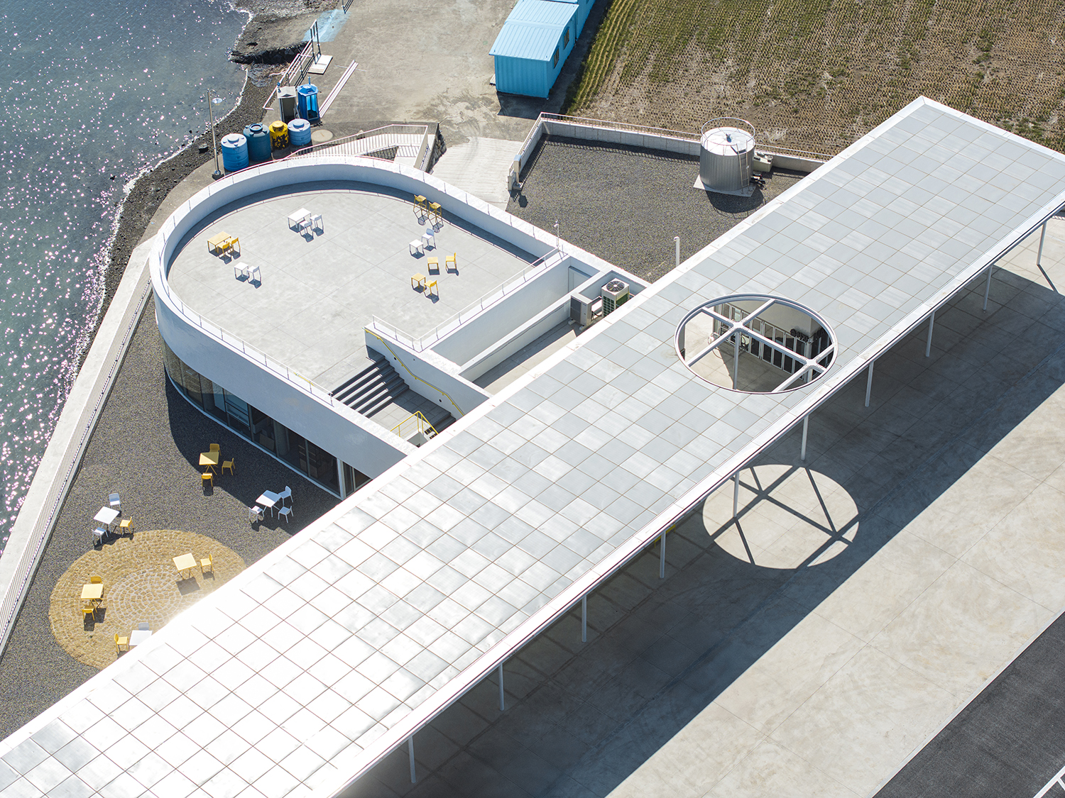 Yet architecture rarely resolves itself exactly as planned. Public buildings in particular must adapt and evolve in response to real-world circumstances. In similar kind, for this project, the design intention concerning spatial usage shifted somewhat from that outlined in the original design along with a change in its operating department prior to its completion. The café facing the sea was converted into an additional retail space for practical reasons, and the central building of the three buildings along the west road was transformed to accommodate the use as an operations office. As a result, the roadside composition became: a shop on one side, a distribution hall where producers package goods for shipment on the other, and an administrative office in between. While this was not our original intention, it had the unexpected effect of turning the central space beneath the roof into more than just a sales area—it became a daily gathering place where production, operation, and consumption intertwine with the life of the local community. Over time, various elements have been added to the building¡¯s exterior: strings of bulbs hanging along the roofline, rows of pennant flags at the front, large banners and signs. These have marred the clean, restrained roofline and given the once-reserved façade a more boisterous character. However, this change has, in its own way, begun to blend with the everyday scenery of the region. Such decorative elements are common sights across Namhae—may in fact have eased the somewhat excessive architectural formality of the original design, allowing it to settle more comfortably into the visual rhythm of the local landscape. Though unplanned, from the architect¡¯s perspective, it may ultimately be the reason that this building, as a public facility, has grown more familiar to residents and naturally embedded itself within the patterns of their daily lives.