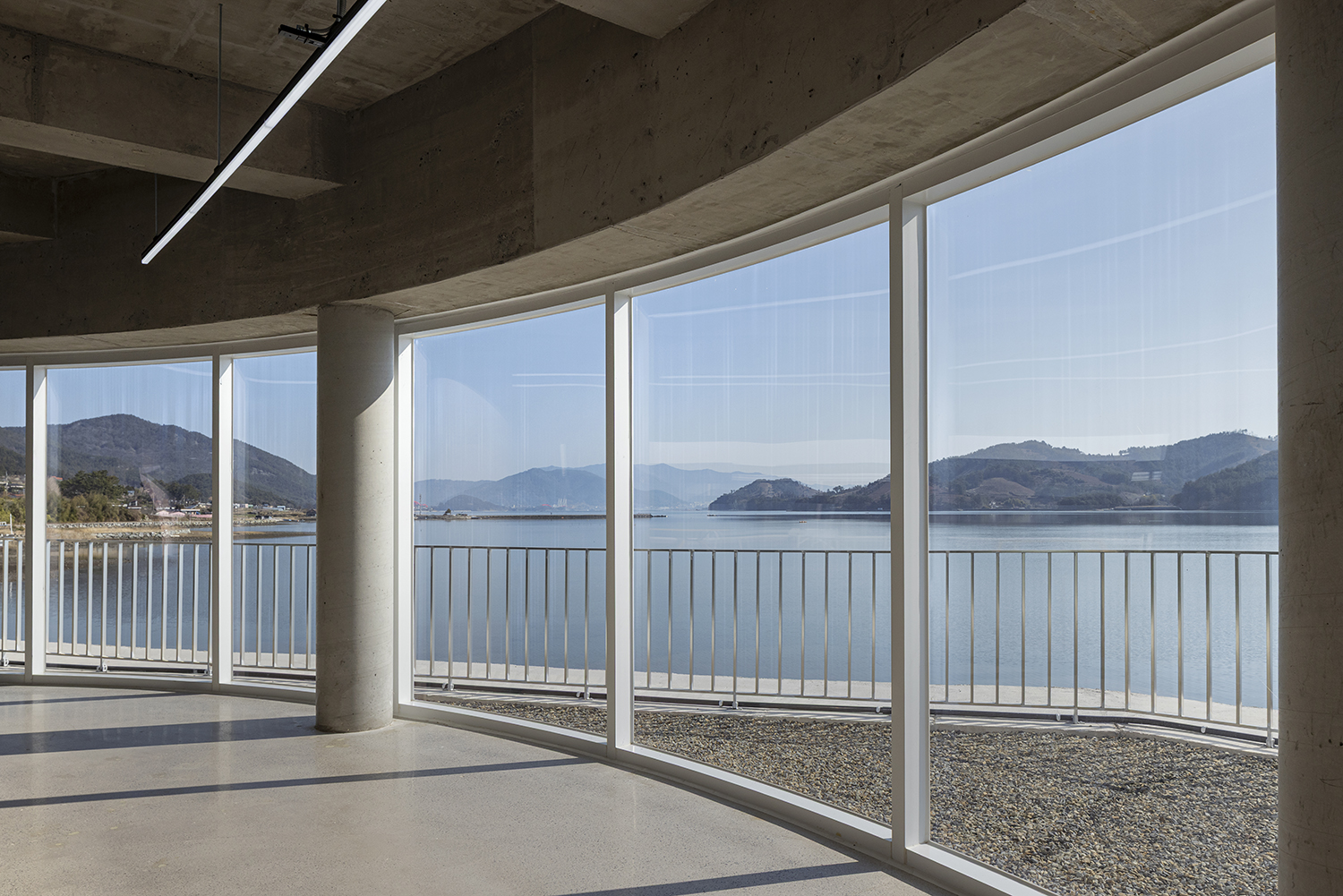 In this context, the ¡®Local Food Market¡¯ projects promoted by local governments offer a small but meaningful alternative. By breaking free from the corporatecentred distribution system and connecting producers with consumers directly, they represent not just a simplification of distribution but a dedicated effort toward restoring relationships. Such markets help local farmers achieve independence, whilst giving consumers the opportunity to access unique local products, further contributing to the regeneration of local cultures. This raises a question: as a venue for reciprocal economic activity, how can architecture play a role as a mediator? What kind of landscape could such architecture create? Situated in Changseon-myeon, Namhae-gun, the Namhae Local Food Market stands between the rolling mountains to the west and an open sea to the east. Despite its enviable natural surroundings, the site is accessible primarily from a main arterial road, making arrival by car far more common than on foot. This condition gave the site an austere, somewhat isolated character, far from the familiar, convivial image of a neighbourhood shop. Therefore, the design process revolved around the single question of how the rhythms and textures of everyday life could be drawn into this place. As a natural consequence and one that is perhaps quite bland in terms of architectural typology, the design process began with the idea of a ¡®market¡¯. A market is not merely a place where commercial activities take place, but also act as a repository of a community¡¯s feelings and sensations layered over time. The unmediated exchanges between producers and consumers generate a lively atmosphere that remain, even now, unmatched by any other form of retail. In Namhae, this quality can still be found in the traditional markets. Beyond the main traditional market, four or five small-scale markets also dot Namhae¡¯s landscape—so modest in size that the term ¡®market¡¯ might seem almost aspirational. Surprisingly, each serves as a vital node within its own village context. Their communal atmosphere owes less to built scale or amenities than to the informal interactions that gather around benches and tables underneath Lexan canopies. The Namhae Local Food Market sought to capture something of this essential typology—a communal place of economic activity based on connection and exchange.