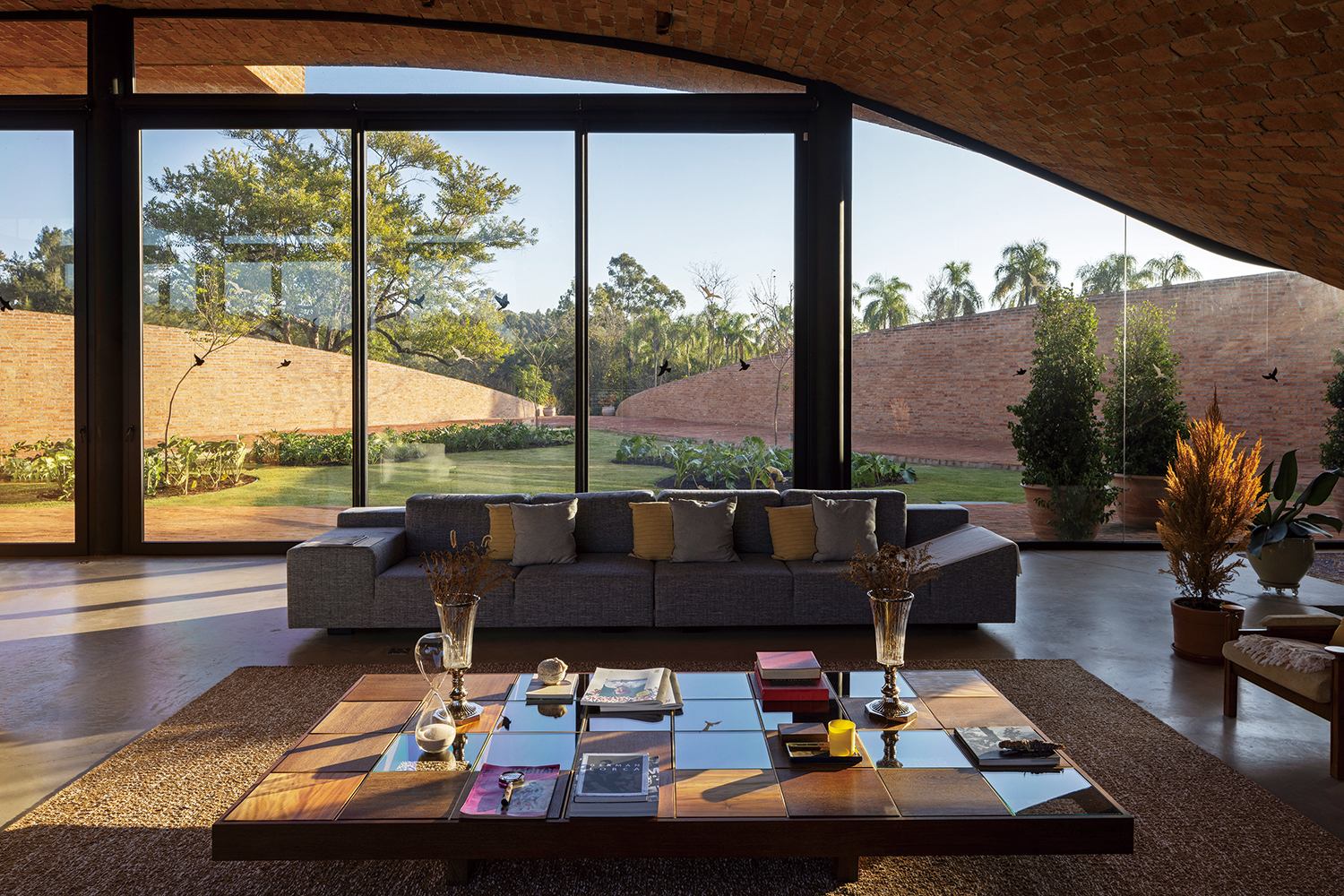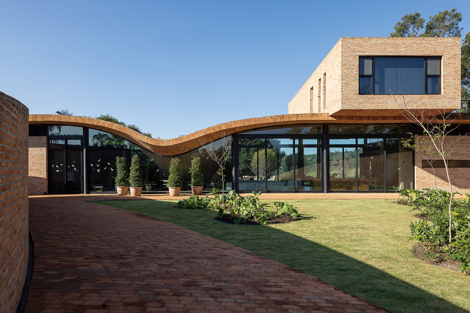 brick, glass, rammed earth