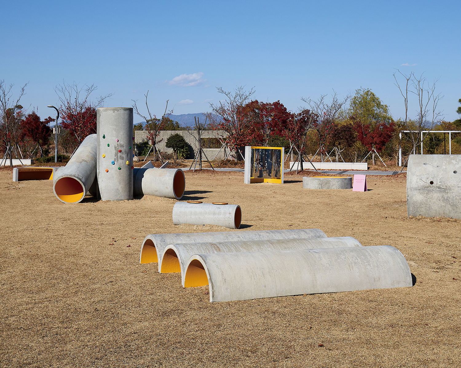 installed in the outdoor garden, repurposes discarded concrete pipes from urban construction processes to create an experiential space in which children explore modes of play on their own.