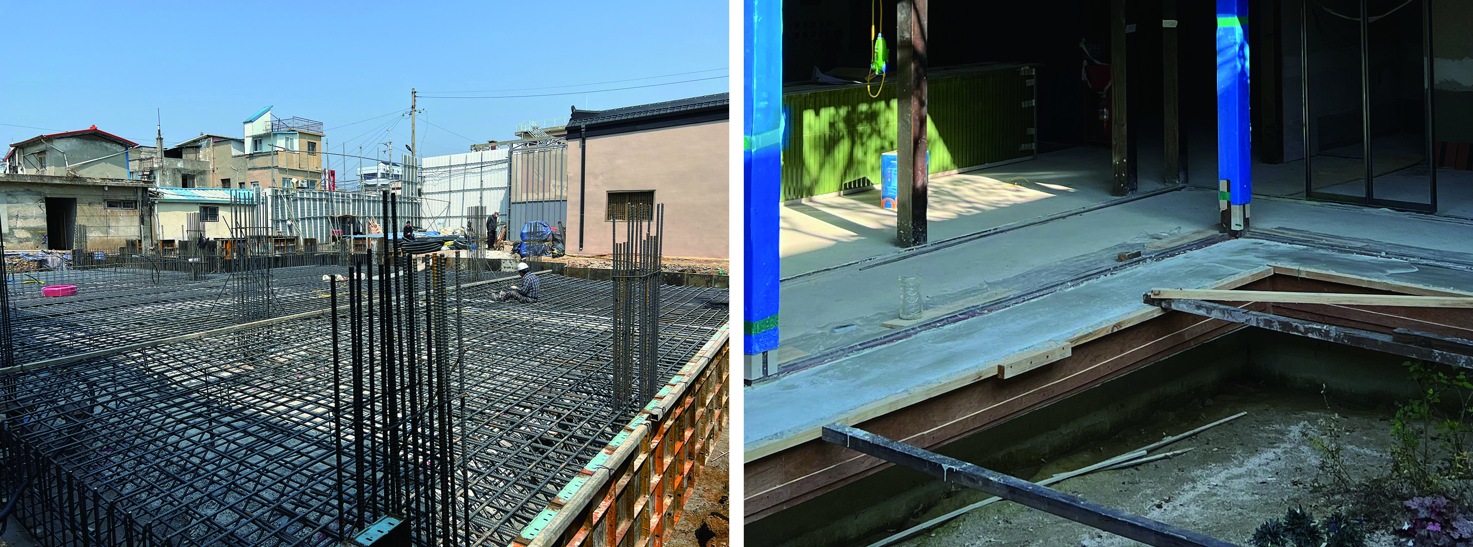 (¿ÞÂÊ) ö°Å ÈÄ ±×¶ó¿îµå ¿µ¿ªÀÇ ±âÃÊ °ø»ç, (¿À¸¥ÂÊ) ±×¶ó¿îµå ¤±ÀÇ ÁßÁ¤ ¹Ù´Ú °ø»ç ©ISON Architects