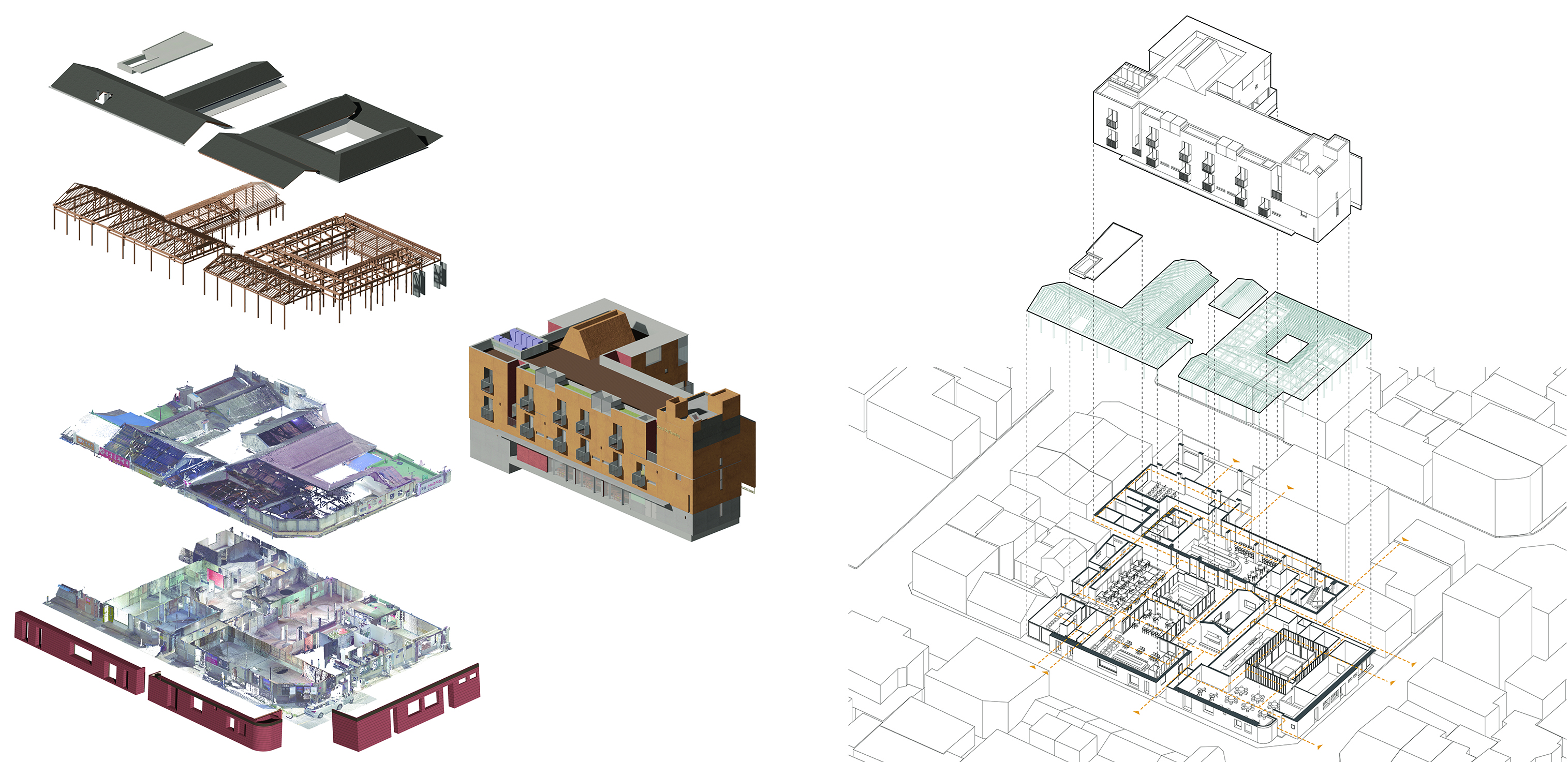 ¿ì¸®´Â °¡´É¼ºÀ» ÇØ´ç ºí·ÏÀÇ ³»ºÎ¿¡¼ º¸¾Ò´Ù. °Ç¹°Àº ÀÏÁ¦°Á¡±â Àû»ê°¡¿ÁÀÇ Æ² À§·Î 70³â¿¡ °¡±î¿î ¼¼¿ù µ¿¾È »îÀÇ ÈçÀûµéÀÌ ÄÑÄÑÀÌ µ¡ºÙ¾î ¿øÇüÀ» ã¾Æº¸±â Èûµç »óÅ¿´Áö¸¸, »ç¿ë °¡´ÉÇÑ ¶¥µéÀ» ÃÎÃÎÈ÷ Àá½ÄÇÏ¸ç ¹ÐÁýµÈ »óÅ¿¡¼ ¾óÇÍ º¸ÀÌ´Â Á¶±×¸¶ÇÑ °ø°£µéÀÇ È帧ÀÌ ÀÐÇû´Ù. ºí·Ï ³»ºÎ¿¡¼ º¸ÀÌ´Â °ø°£ÀÇ ÀáÀçÀû È帧À» »ì·Á³»¸é Çǰ¡ ÅëÇÏ°Ô ÇÒ ¼ö ÀÖ°Ú´Ù´Â ÆÇ´ÜÀÌ µé¾ú´Ù. ºí·Ï ³»ºÎ¿¡ ¸ÕÀú Çǰ¡ µ¹°Ô ÇÏ¿© ±× »ý¸í·ÂÀÌ ¿ÜºÎ·Î Àü´ÞµÇ°Ô ÇÏÀÚ´Â Àü·«À̾ú´Ù. À̸¦ À§Çؼ´Â 100¿© ³â µ¿¾È ÀûÃþµÈ Äѵé Áß Á¦°ÅÇÒ °Í°ú ³²±æ °ÍÀ» ¼Ô¾Æ³»´Â ÀÏÀÌ ¿ì¼±µÇ¾î¾ß Çß´Ù. ¸ðÅüÀÌ Å¬·´¿¡¼ ½ÃÀÛÇÑ ÇÁ·ÎÁ§Æ®´Â Á¶±Ý¾¿ ÀÎÁ¢ÇÑ ¶¥µé·Î È®ÀåµÇ¾ú°í, ±Þ±â¾ß´Â ºí·ÏÀÇ ¹Ý´ëÆí µµ·Î¿¡±îÁö À̸£·¶´Ù. ¿©°üÀ¸·Î ¾²ÀÌ´ø 1960³â´ë 3Ãþ °Ç¹°À» ¸ÅÀÔÇÏ¿© È£ÅÚÀ» ½ÅÃàÇϰڴٴ °á·Ð¿¡ µµ´ÞÇß´Ù. °á°úÀûÀ¸·Î ¿ì¸®°¡ ±×¶ó¿îµå È£ÅÚ(Ground Hotel)À̶ó ĪÇÏ´Â µµ½ÉÇü È£ÅÚ ÄÞÇ÷º½ºÀÇ ¸ð¾ç»õ¸¦ °®Ãß°Ô µÈ ¶§´Â ¼³°è°¡ ½ÃÀ۵ǰí 1³âÀÌ Áö³ ½ÃÁ¡À̾ú´Ù.