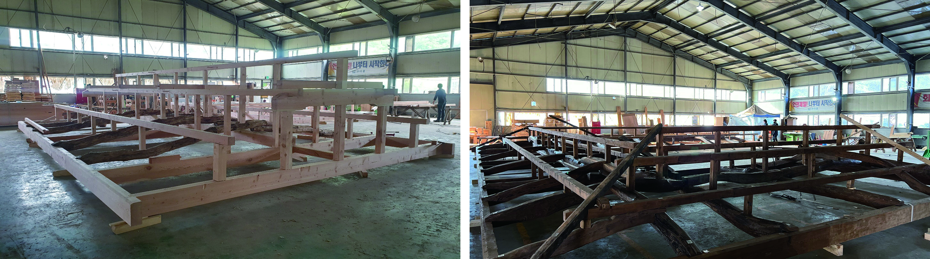 (¿ÞÂÊ) ±âÁ¸ °Ç¹°ÀÇ ¸ñ±¸Á¶¸¦ ÇØÃ¼ÇÑ ÈÄ °íÀç¿Í »õ ¸ñÀ縦 °¡Áö°í ÀçÁ¶¸³Çß´Ù. (¿À¸¥ÂÊ) ÀçÁ¶¸³µÈ ÁöºØ ±¸Á¶¹°ÀÌ °íÀç¿Í ¾î¿ï¸®µµ·Ï ½ºÅ×ÀΠ󸮸¦ Çß´Ù. ©ISON Architects