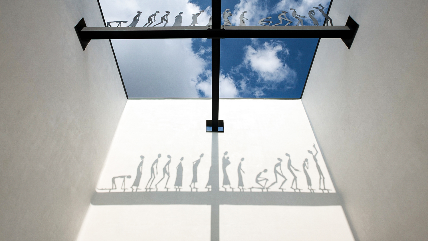 ±â³ä°üÀÇ °ÇÃàÀû ¹é¹Ì´Â ÀÚ¿À¼±¿¡ Á¤·ÄµÈ Á÷À°¸éüÀÇ ¡®¼ø±³±¤À塯ÀÌ´Ù. »óºÎ°¡ °³¹æµÈ ÆÄƼ¿À ÇüÅÂÀÇ ÀÌ ±¤ÀåÀº žçÀÇ ±ËÀû¿¡ µû¶ó ÀÛµ¿ÇÏ´Â ½Ã°£ ÀåÄ¡·Î, ºÎÁöÀÇ À§µµÀÎ ºÏÀ§ 36.5¡Æ¿¡ ¸ÂÃç Á¤¹ÐÇÏ°Ô ¹èÄ¡µÇ¾ú´Ù. º¸ÀÌµå »óºÎ¿¡´Â ½ÊÀÚ Çü°ÀÌ ¼³Ä¡µÇ¾î ÀÖÀ¸¸ç, ±× À§¿¡ ÀçºÒ ÀÛ°¡ ½ÉÁö¿¬ÀÌ ¼ø±³ÀÚ 15ÀÎÀ» Çü»óÈÇÑ ±Ý¼Ó Á¶°¢ÀÌ ¹èÄ¡µÇ¾î ÀÖ´Ù. žçÀÇ °íµµ¿Í °èÀý º¯È¿¡ µû¶ó 15ÀÎÀÇ ±×¸²ÀÚ´Â º®¸é¿¡ µå·¯³µ´Ù »ç¶óÁö±â¸¦ ¹Ýº¹ÇÑ´Ù. ƯÈ÷ ³²Áß°íµµ°¡ °¡Àå ³ôÀº ÇÏÁö Á¤¿À¿¡´Â ¼ø±³ÀÚÀÇ ½Ç·ç¿§ÀÌ ¹æ¹®ÀÚÀÇ ´«³ôÀÌ¿¡ ½Ç¹° Å©±â·Î ¸ÎÈù´Ù. ¹ÚÁ¦µÈ µ¿»ó°ú ´Þ¸® ÀÌ ±×¸²ÀÚ´Â ¡®ÇÏ´ÃÀÌ Çã¶ôÇÒ ¶§¡¯ ÇѽÃÀûÀ¸·Î ¸ð½ÀÀ» µå·¯³»¸ç, °ø°£¿¡ ¿µÀû Á¸Àç°¨°ú »ó¡Àû ¿ï¸²À» ºÎ¿©ÇÑ´Ù.