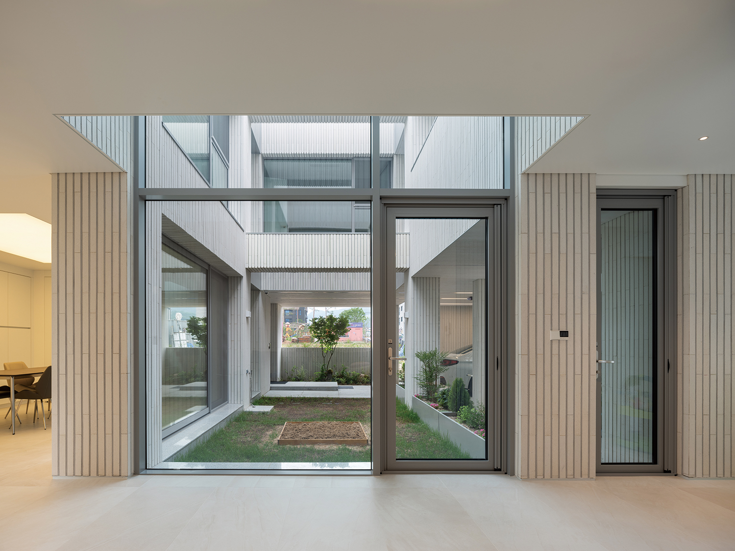 1Ãþ¿¡¼­´Â °¡Á·ÀÇ ÀÏ»óÀÌ °¡Àå ¹Ðµµ ÀÖ°Ô µå·¯³­´Ù. °Å½Ç, ÁÖ¹æ, ¼­Àç, ½Ä»ç °ø°£Àº ±â´ÉÀûÀ¸·Îµµ, ±×¸®µå·Îµµ ³ª´µ¾î ÀÖÁö¸¸, ÁßÁ¤À» ÃàÀ¸·Î ÇϳªÀÇ Àå¸éó·³ À̾îÁø´Ù. ¿­¸®°í ´ÝÈ÷´Â ±¸Á¶´Â °¡Á· °£ÀÇ °Å¸®¸¦ Á¶ÀýÇϸç, °¨Á¤ÀÇ ¹Ðµµ¸¦ º¯ÁÖÇÑ´Ù. ±â´ÉÀÇ ¿¬°áÀÌ °¨Á¤ÀÇ ¿¬°á·Î È®ÀåµÇ´Â °ÍÀÌ´Ù.