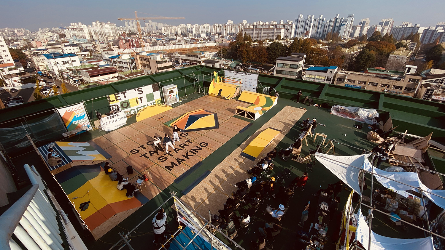 ±º»ê½Ã¹Î¹®Èȸ°ü ¿Á»óÀ» ½ºÄÉÀÌÆ®º¸µåÀåÀ¸·Î Å»¹Ù²ÞÇÑ 2020 ±×·£µå DIT Æä½ºÅ¸(À±ÁÖ¼± ÃѰý±âȹ). ©Yoon Zoosun